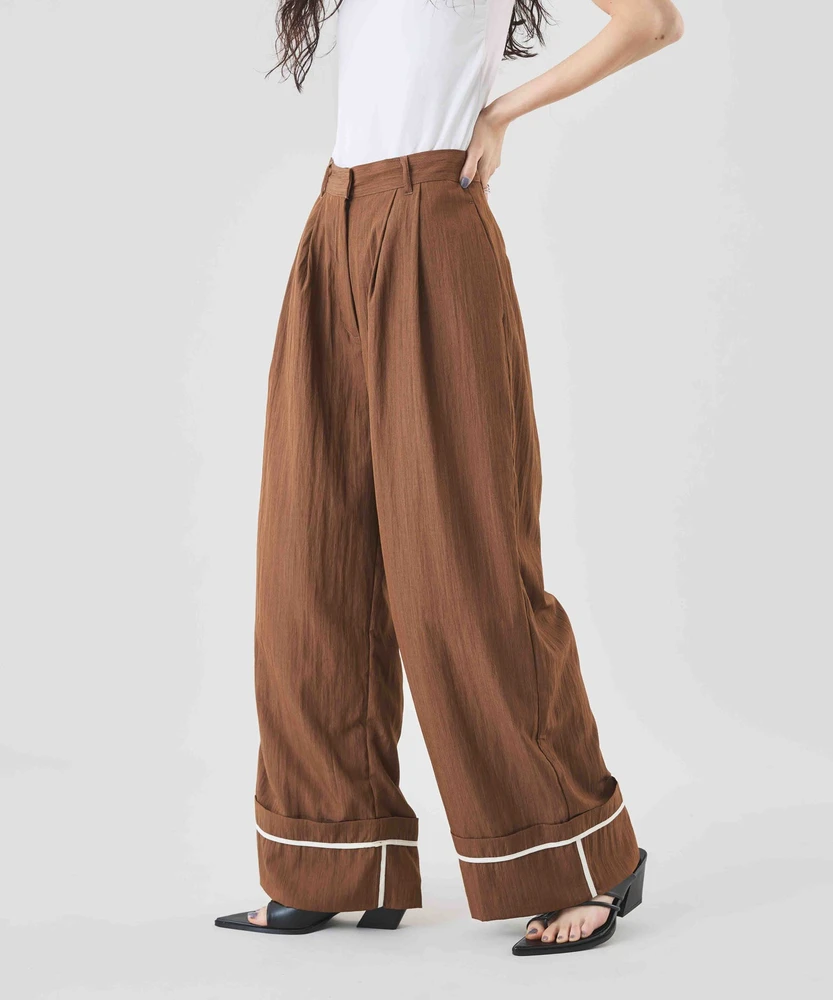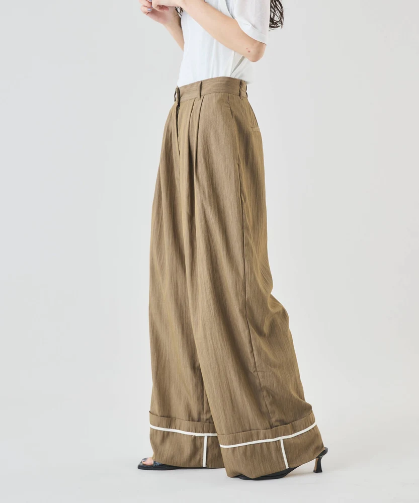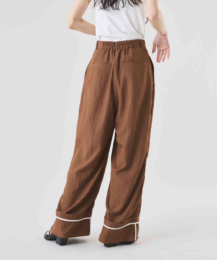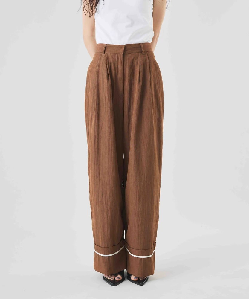 裾配色パイピング タックワイドパンツ【Muscat(マスカット)】(ブラウン)