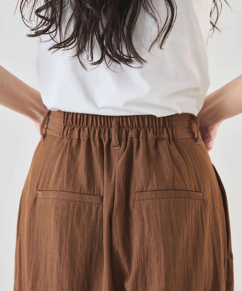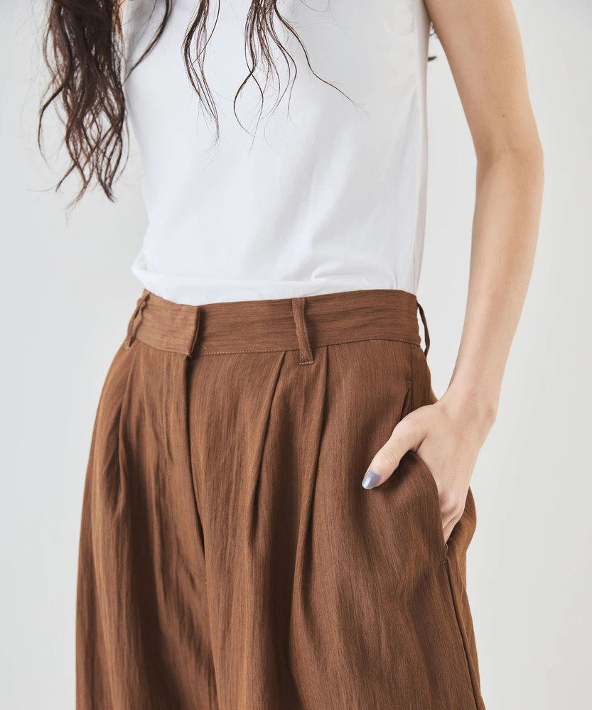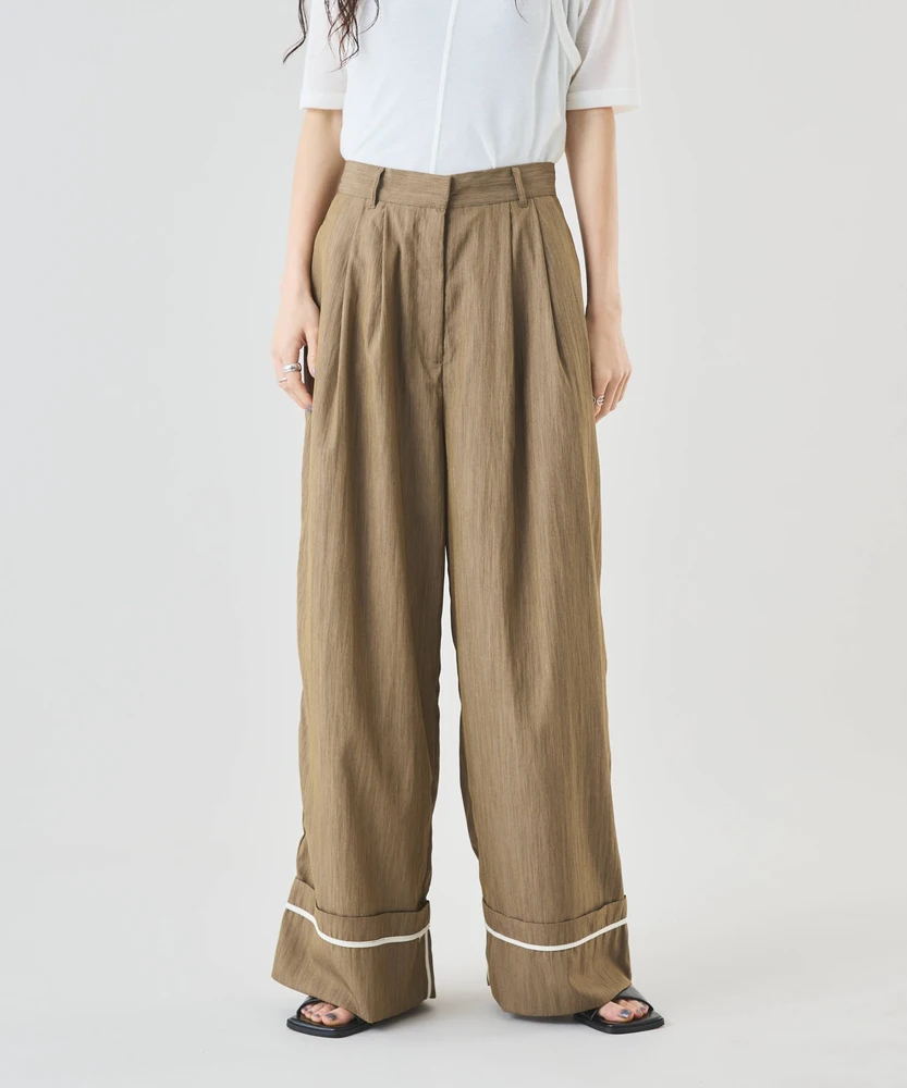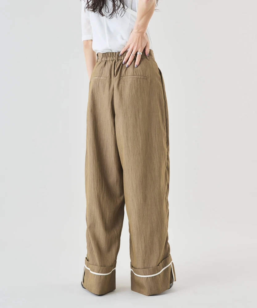 裾配色パイピング タックワイドパンツ【Muscat(マスカット)】(ブラウン)