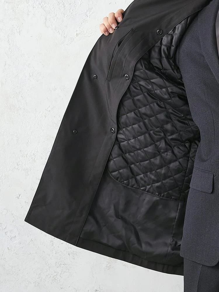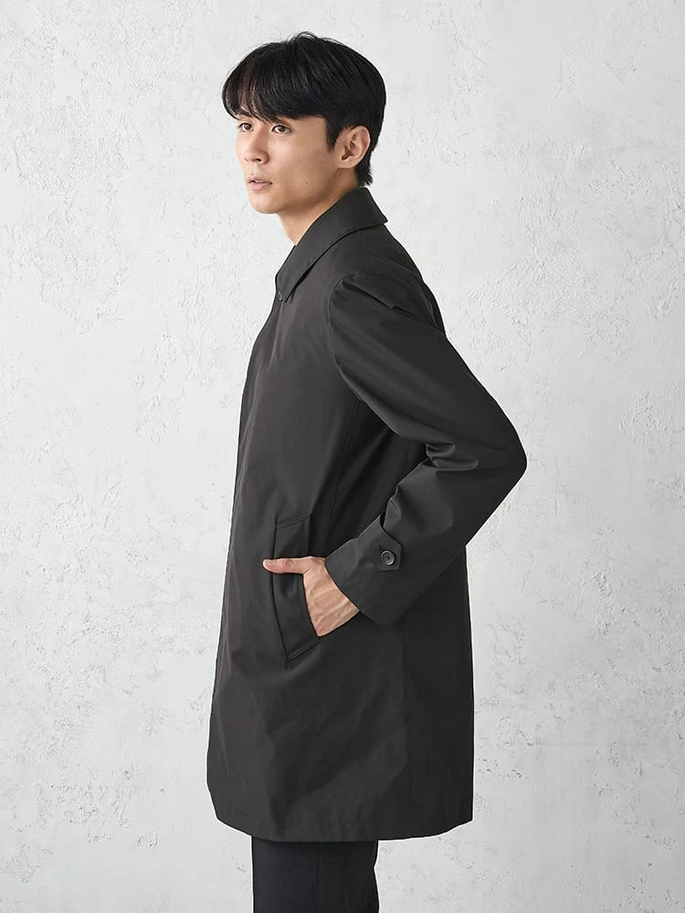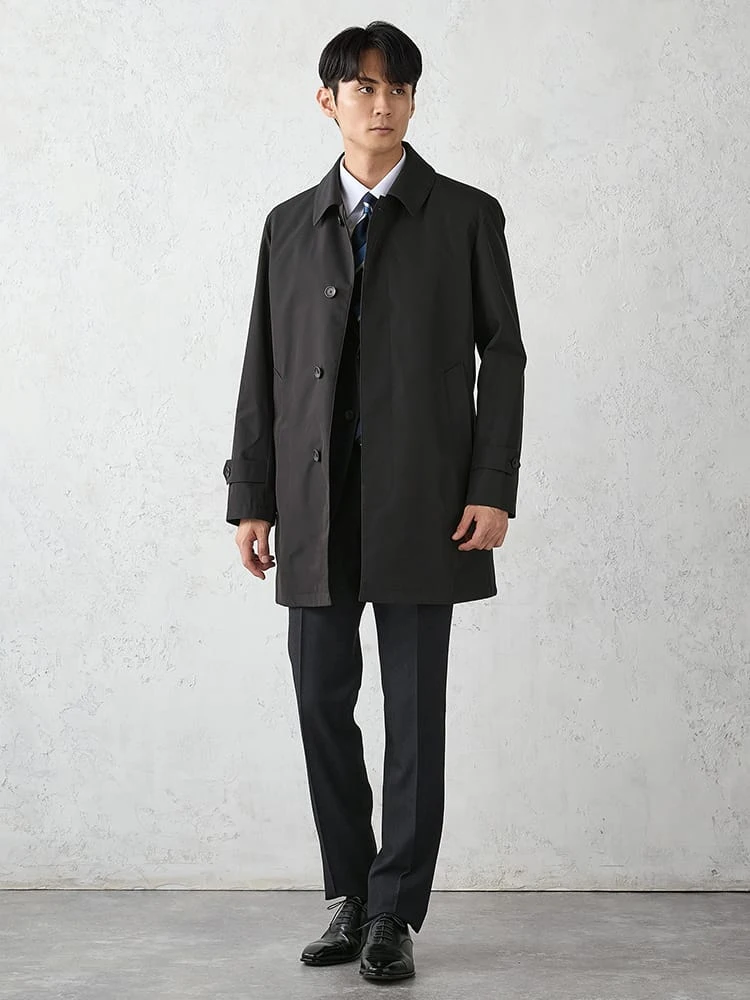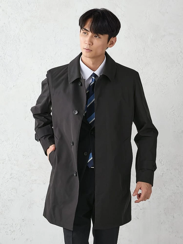 無地ステンカラーコート 脱着ライナー付き ブラック
