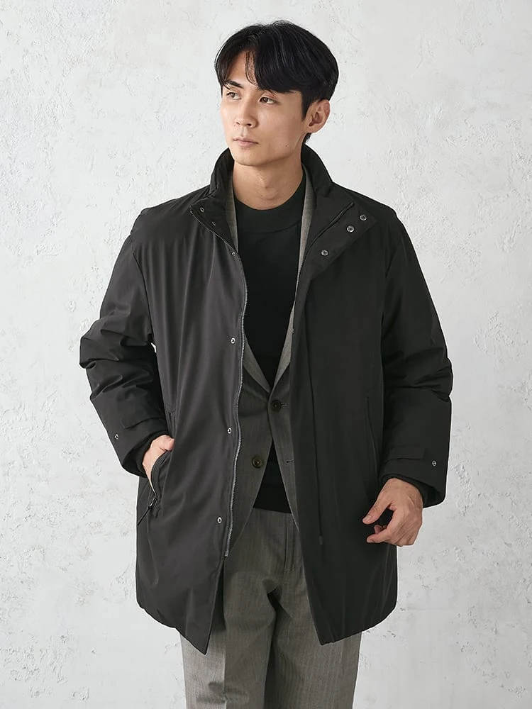 【撥水/防風】オールウェザーテックススタンドコートベージュ/ブラック
