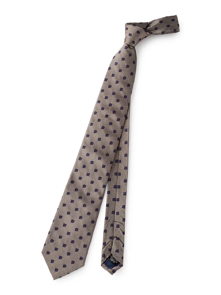 インポート生地ネクタイシリーズ 小紋柄 ベージュ/ブラウン/ネイビー(ブラウン)