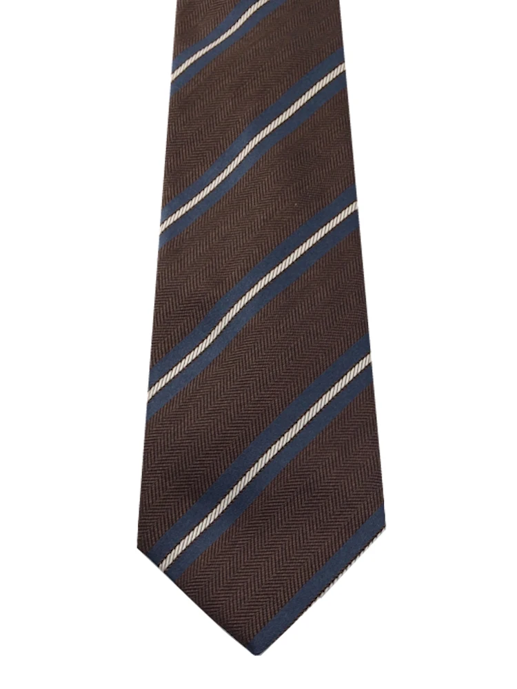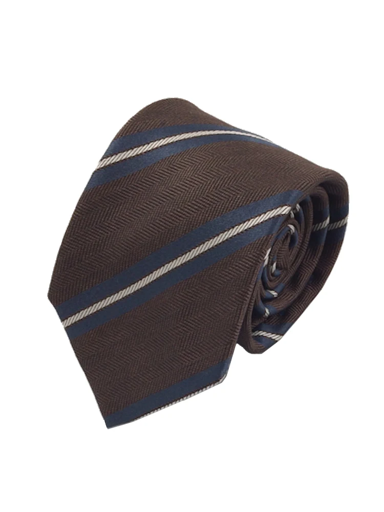 インポート生地ネクタイシリーズ ストライプ ベージュ/カーキ/ネイビー(ベージュ)