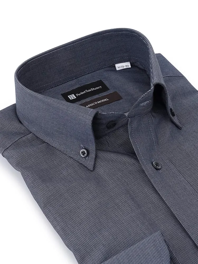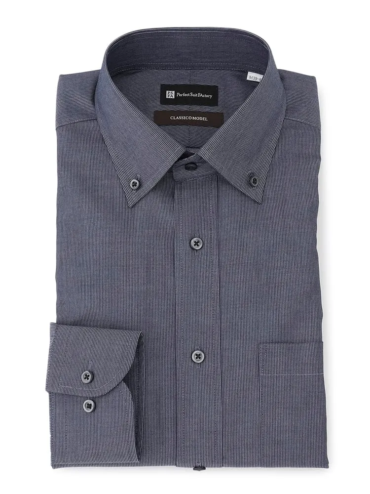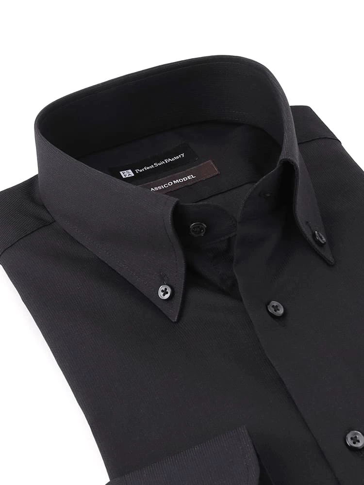 【ノンアイロン】コーデュロイライク 長袖ワイシャツ【クラシコ】ボタンダウン ブラック/ブルー(ブラック)