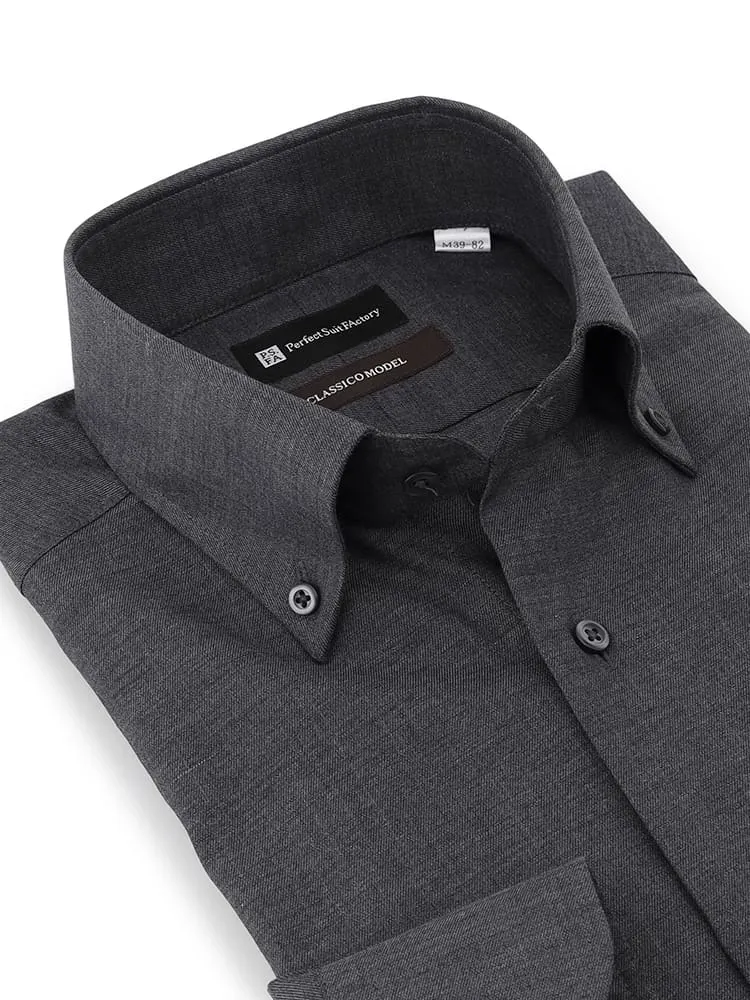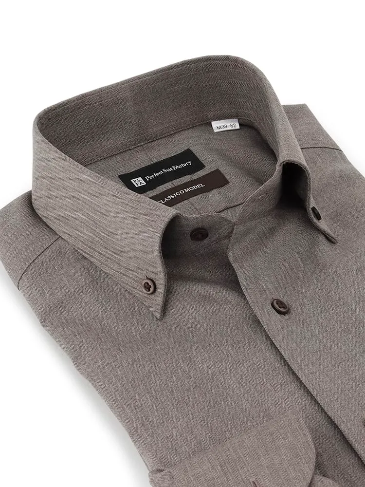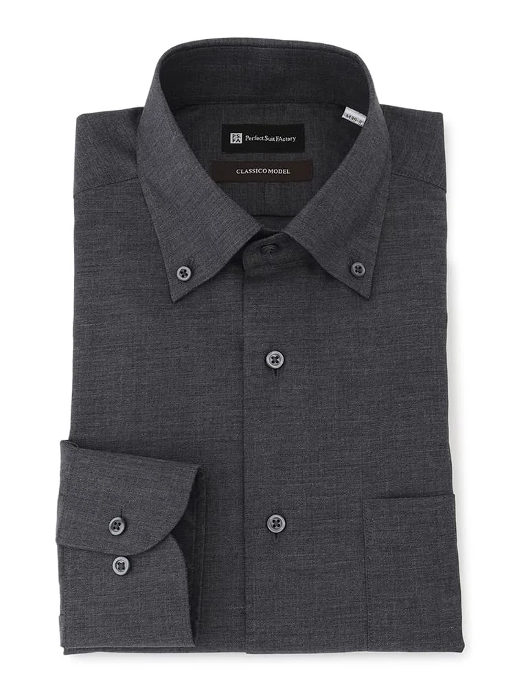【ノンアイロン】ウールライク 長袖ワイシャツ【クラシコ】ボタンダウン グレー/ベージュ(C.グレー)