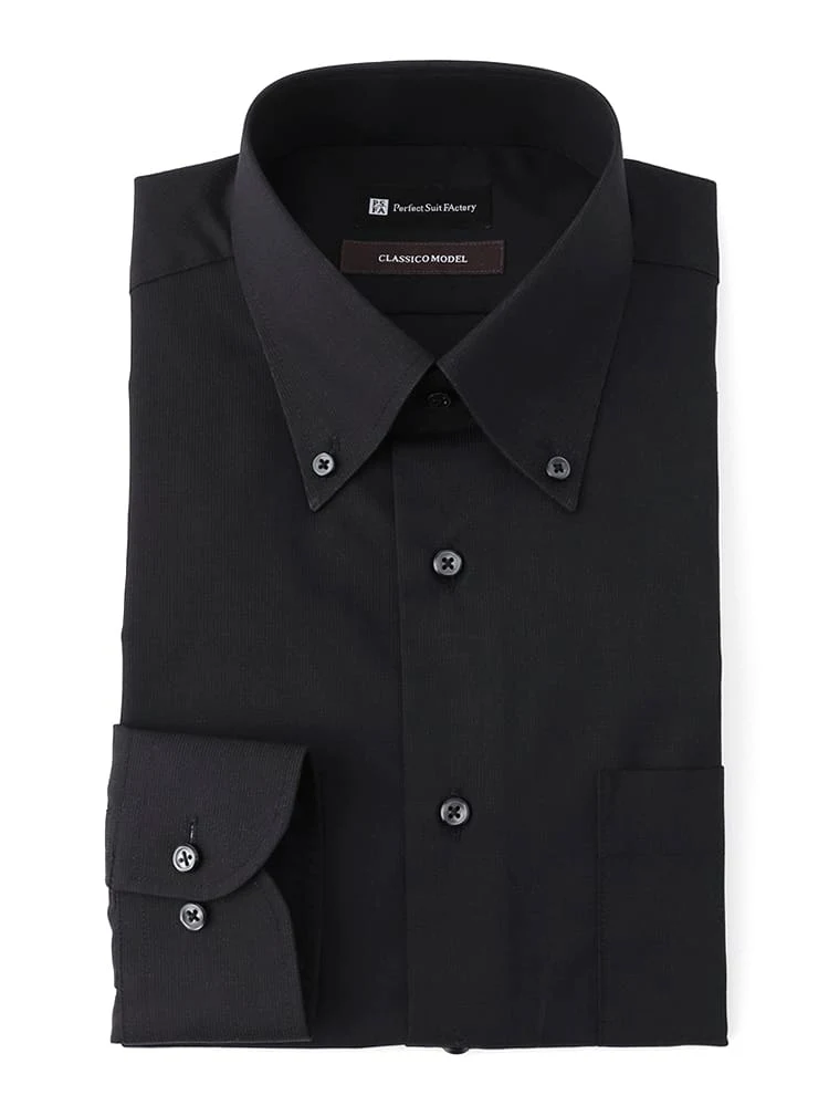 【ノンアイロン】コーデュロイライク長袖ワイシャツ【クラシコ】ボタンダウンブラック/ブルー