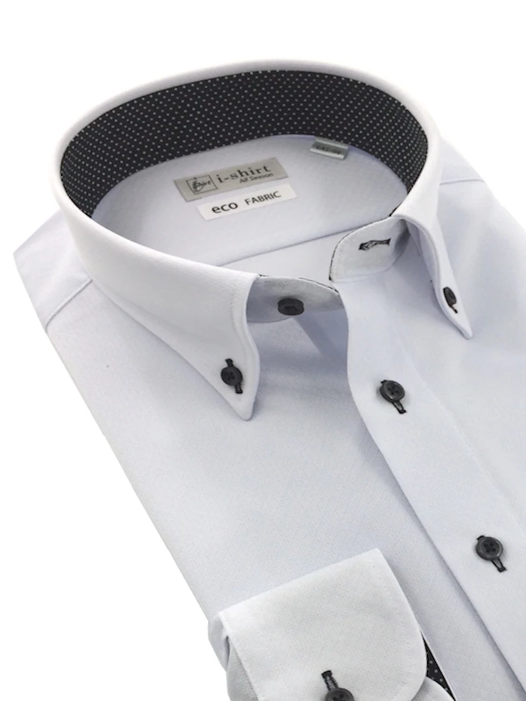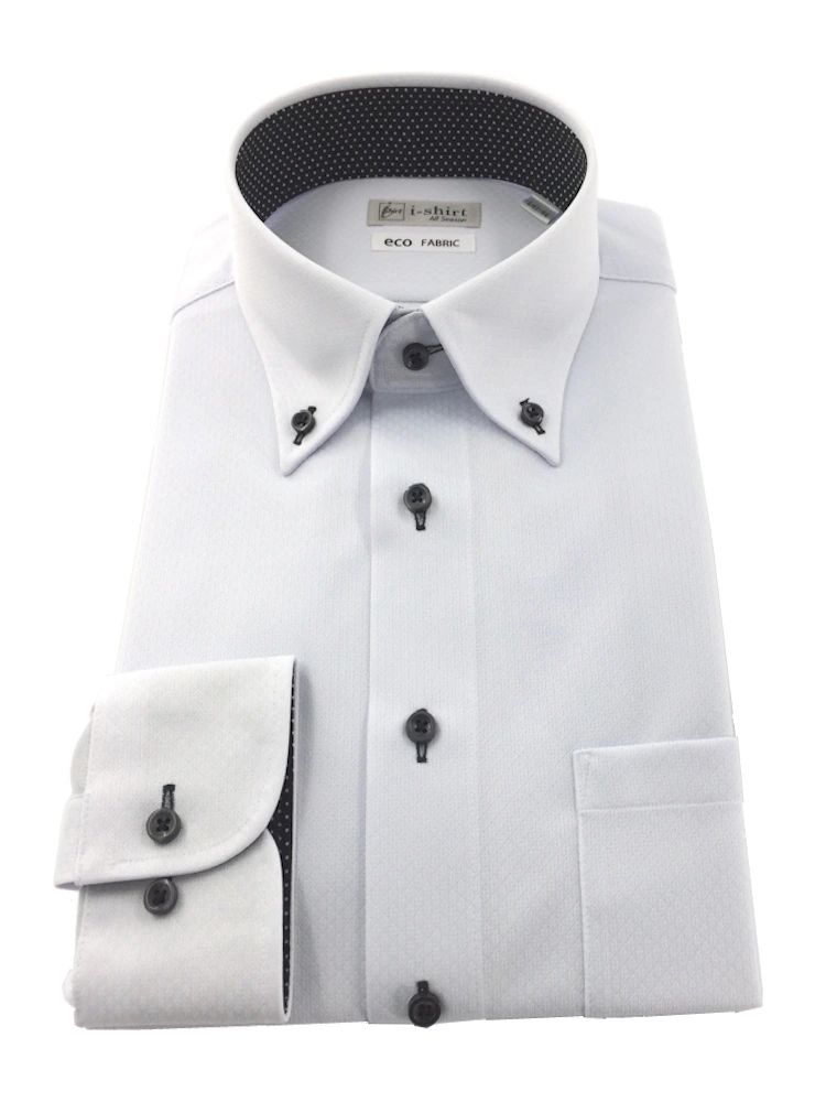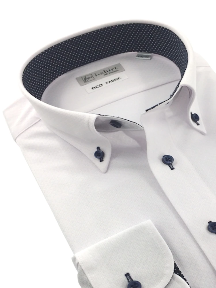 【完全ノーアイロン】長袖アイシャツ ドット別布仕様 ボタンダウン ホワイト/グレー<2点で1,000円OFF/3点で2,000円OFF対象>(ホワイト)