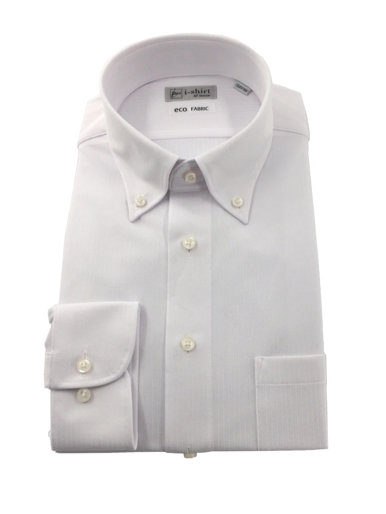 【完全ノーアイロン】長袖アイシャツ 織柄 ボタンダウン ホワイト/サックス<2点で1,000円OFF/3点で2,000円OFF対象>(ホワイト)