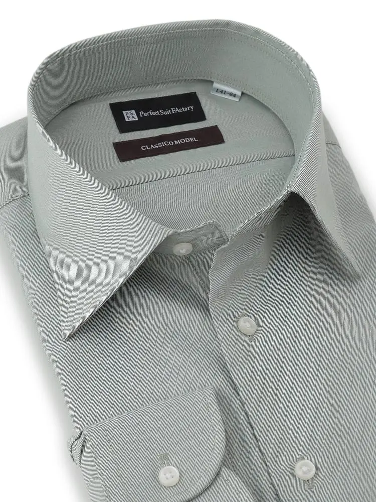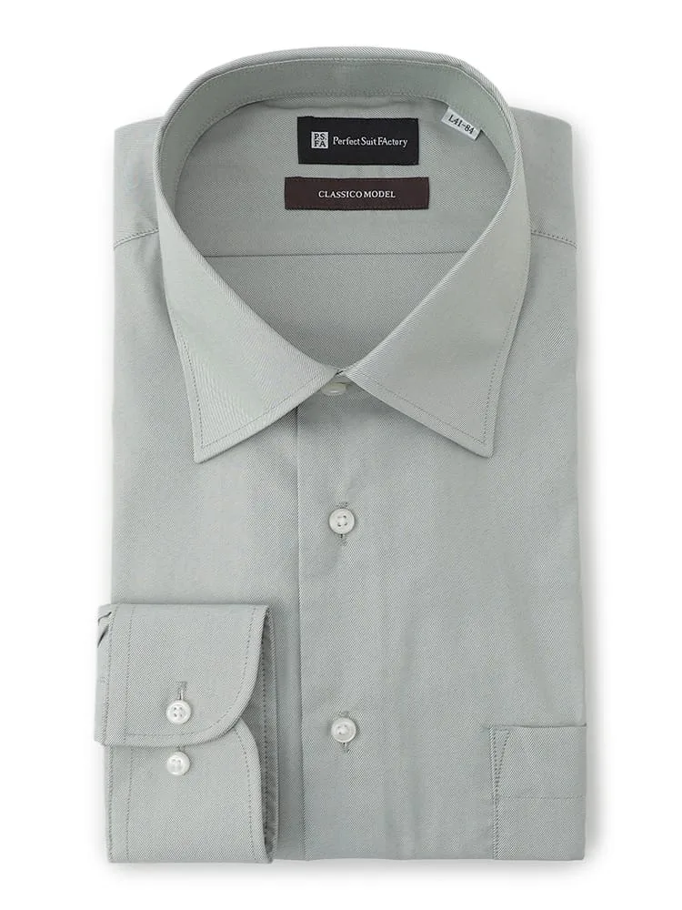 【ノンアイロン】長袖ワイシャツ【クラシコ】5function カラーシャンブレー グリーン
