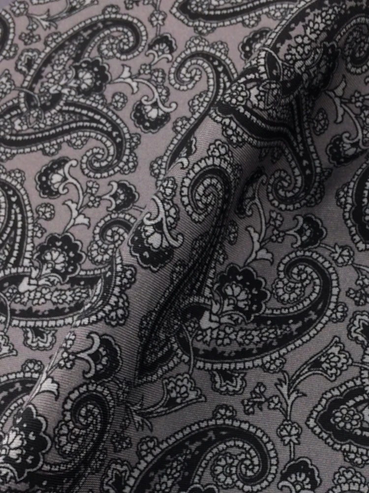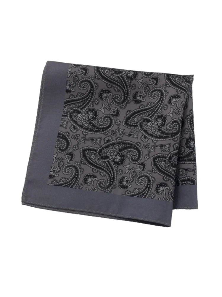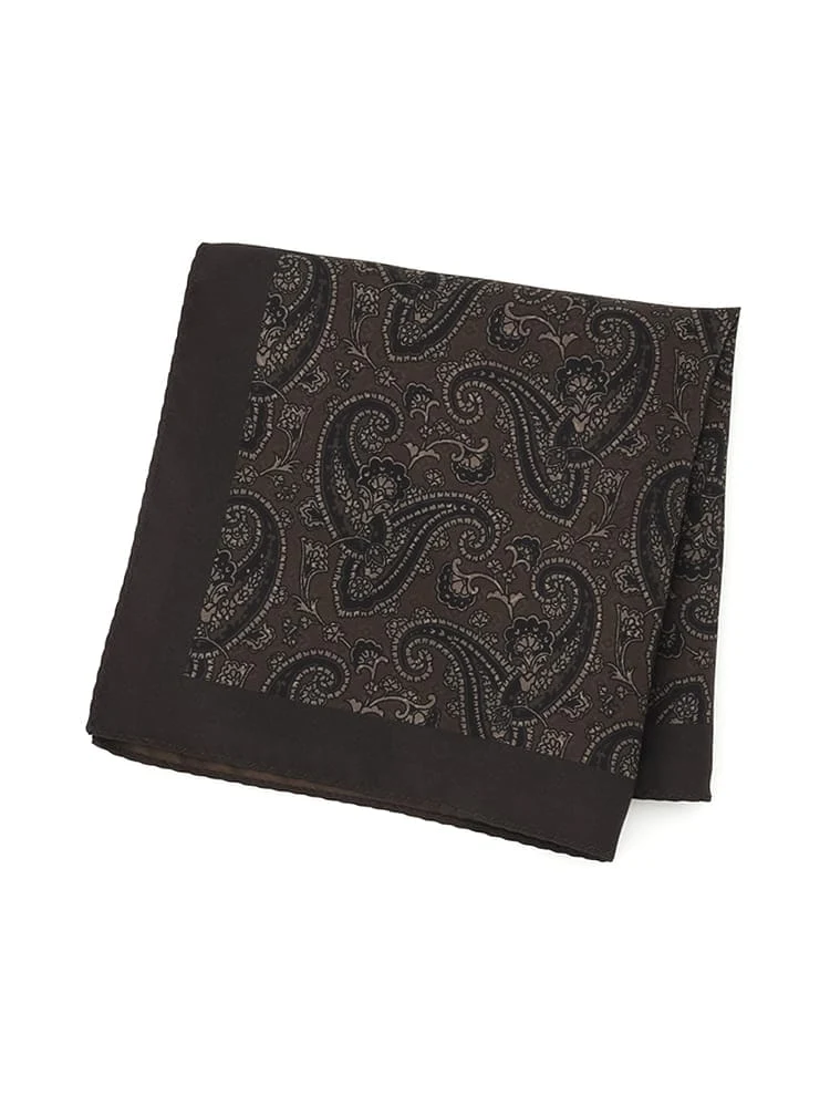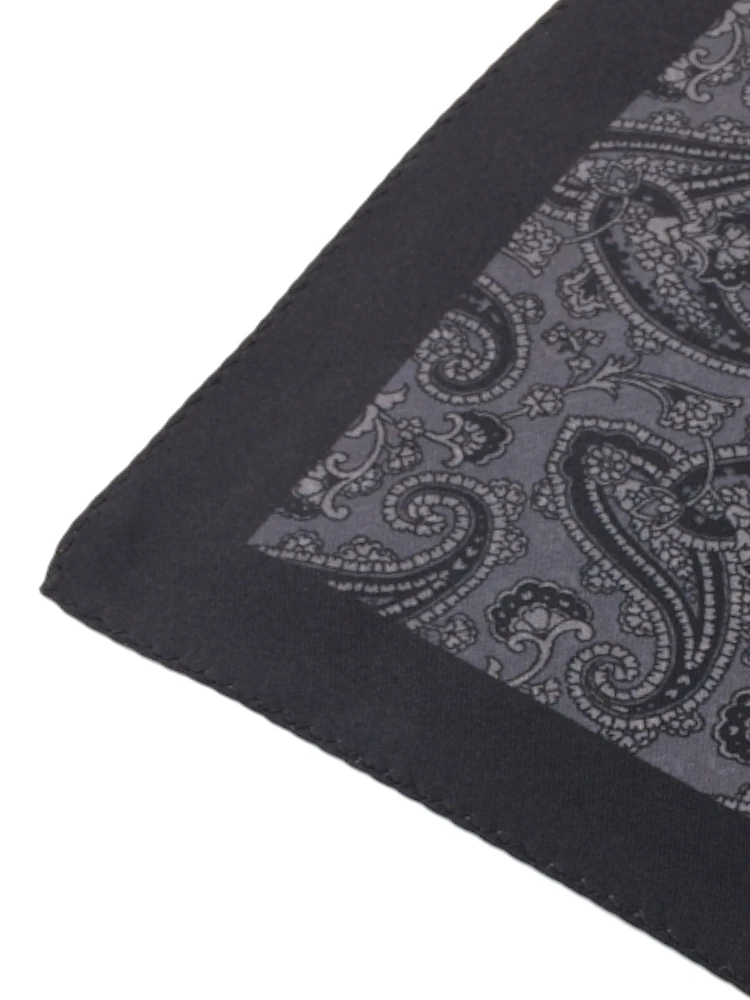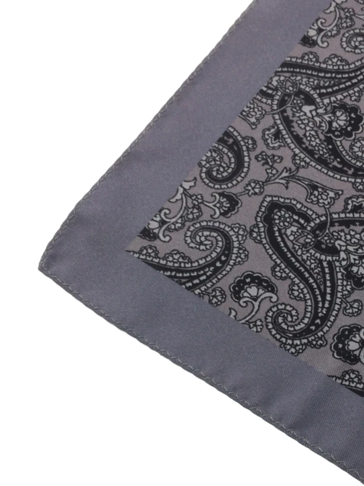 リバーシブルポケットチーフ ペイズリー×小紋柄 ブラック/グレー/ブラウン/ネイビー(M.グレー)