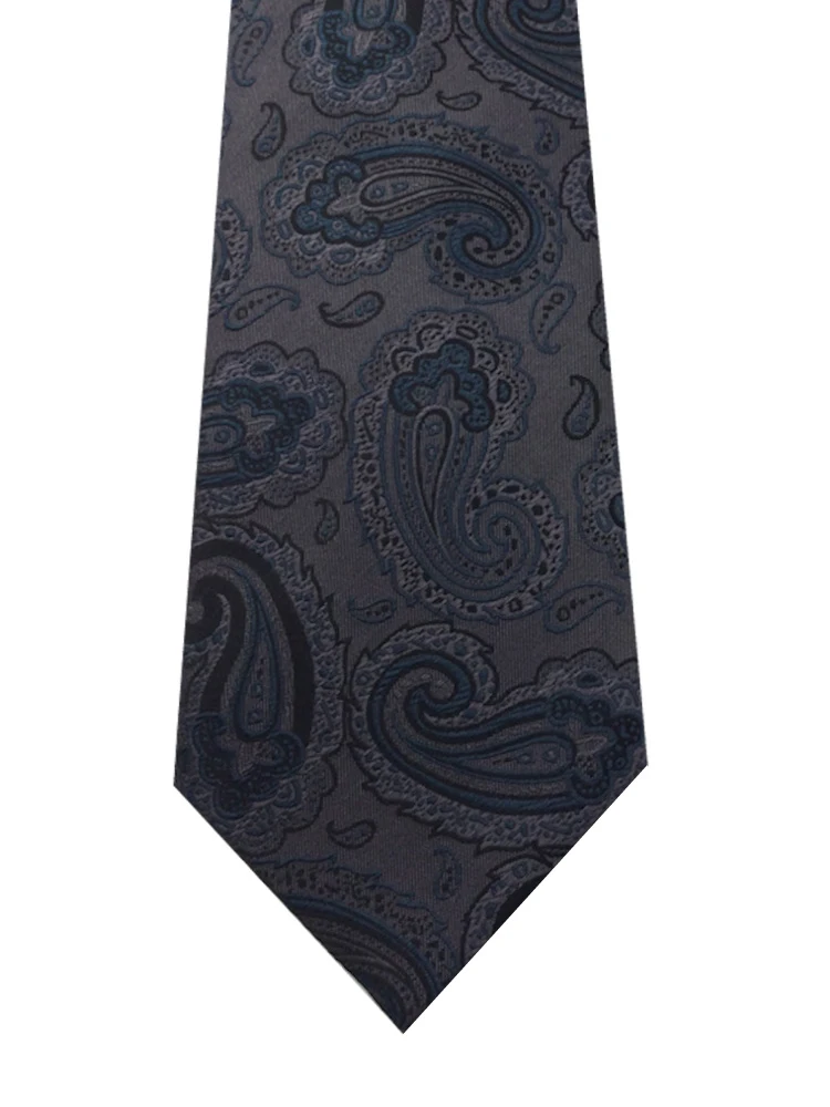 アルマンドネクタイ シルク100% ペイズリー柄 グレー/ブラウン/ネイビー(M.グレー)