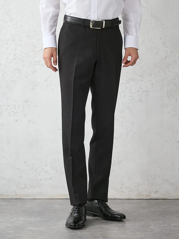 腰まわりからすっきりとフィットするトラウザーズで、スマートな着こなしを演出。