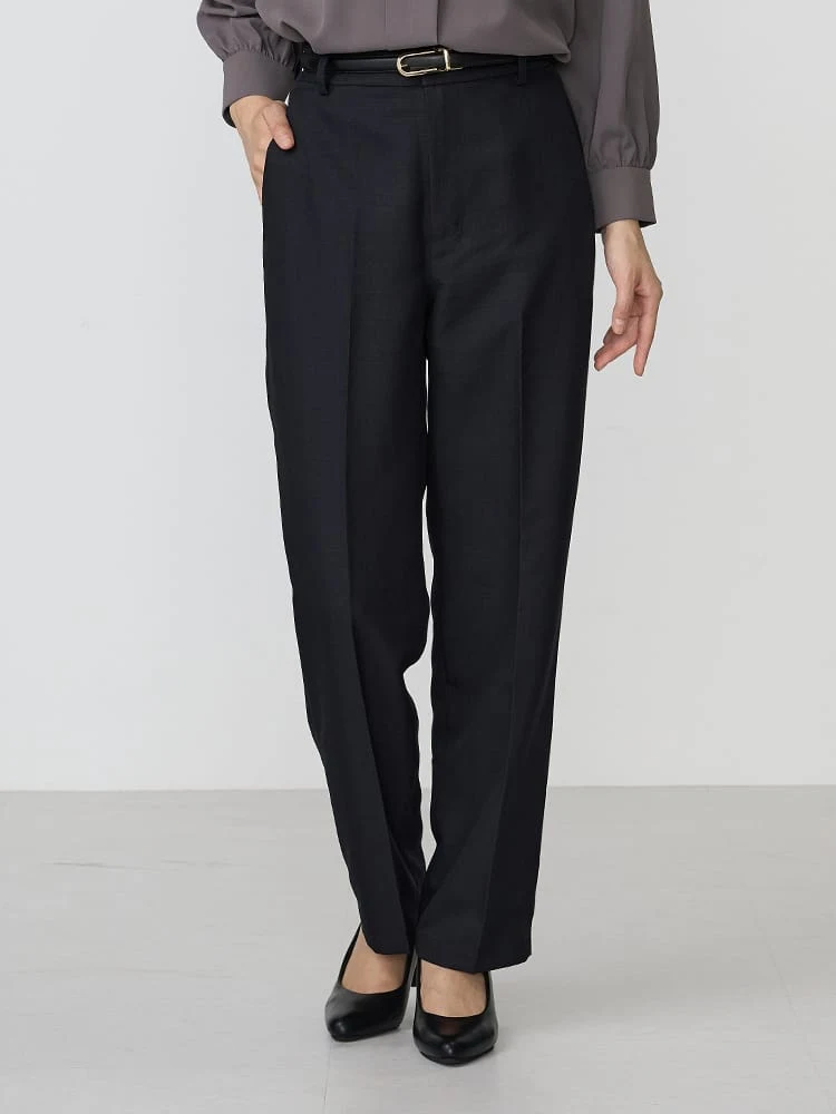 シルク混リクルートスーツセミフレアーパンツ無地ブラック