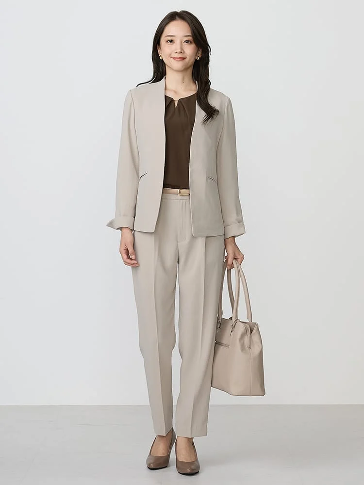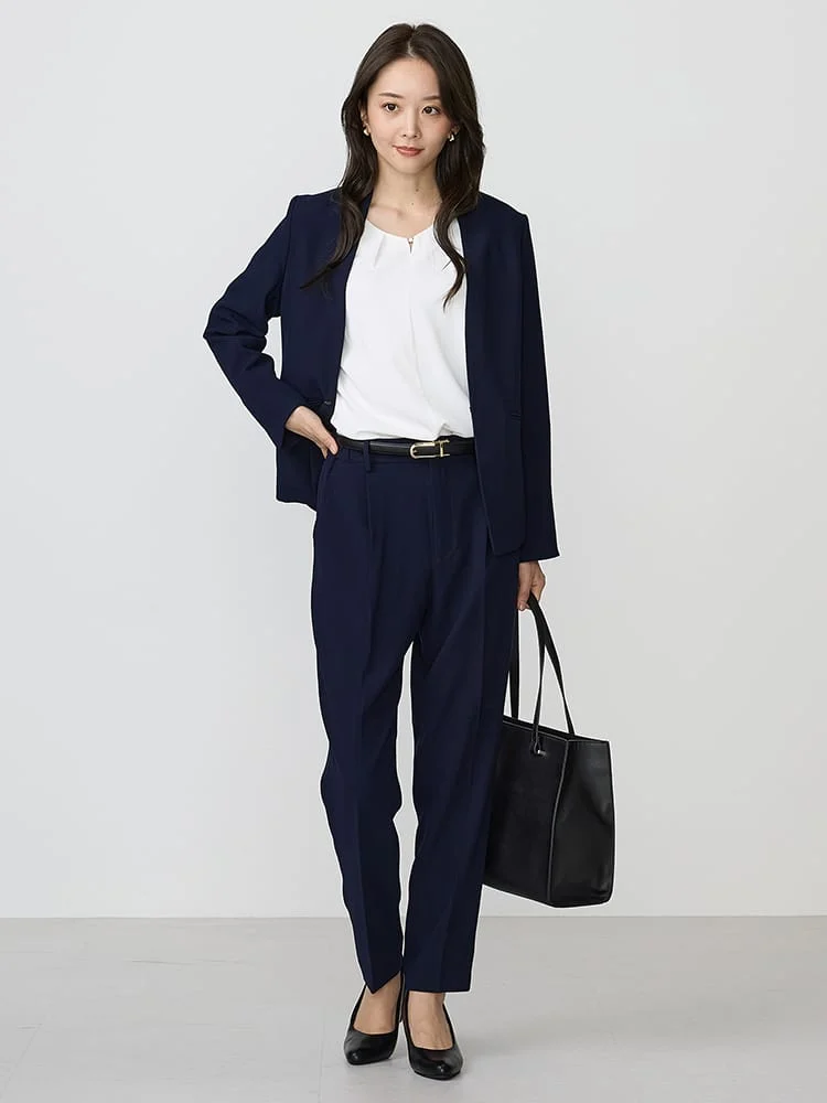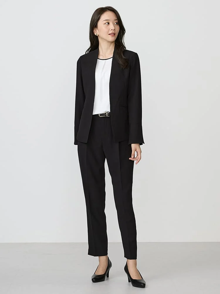 バックサテンジョーゼットスーツ テーパードパンツ ベージュ/ネイビー/ブラック(ブラック)