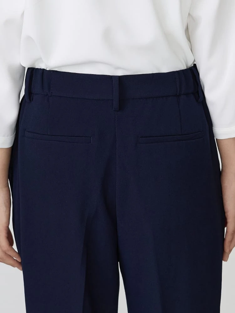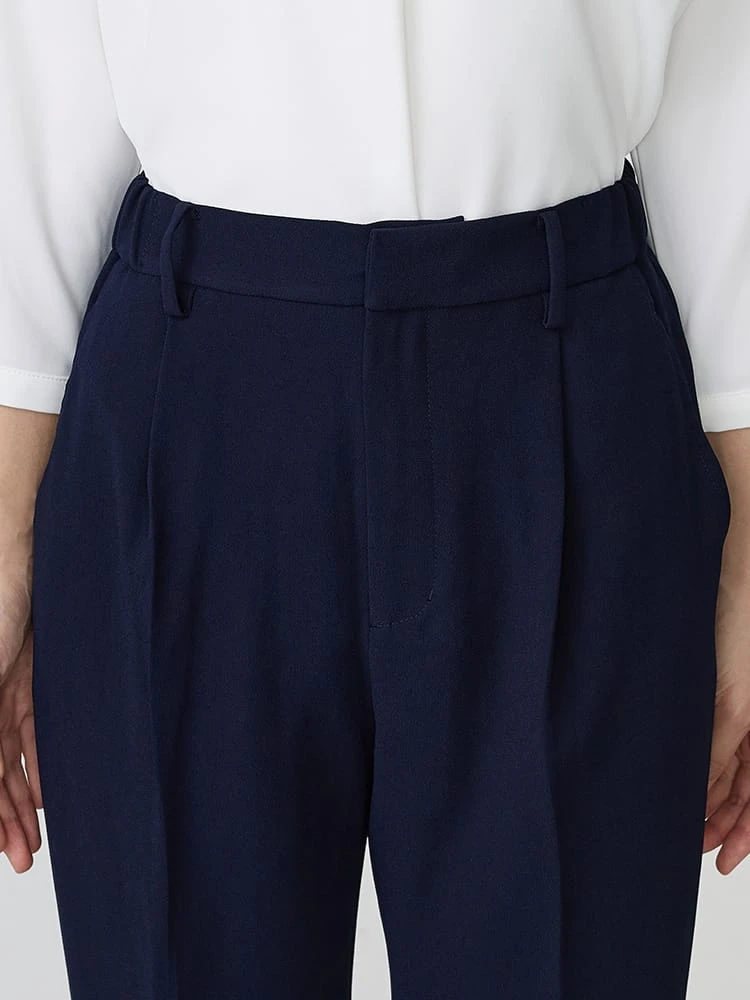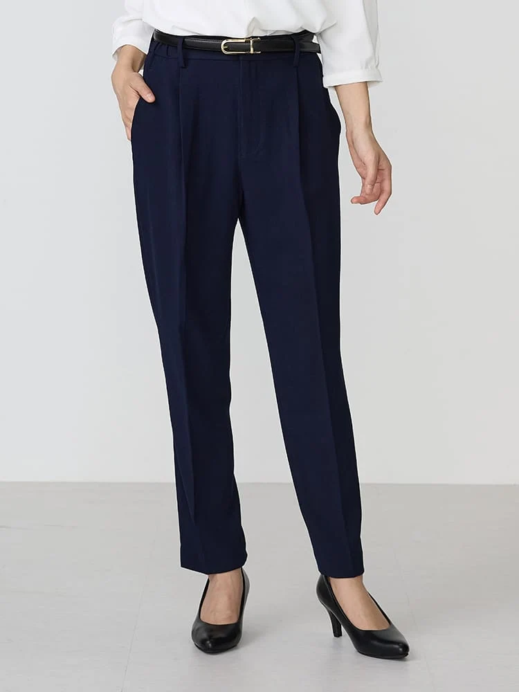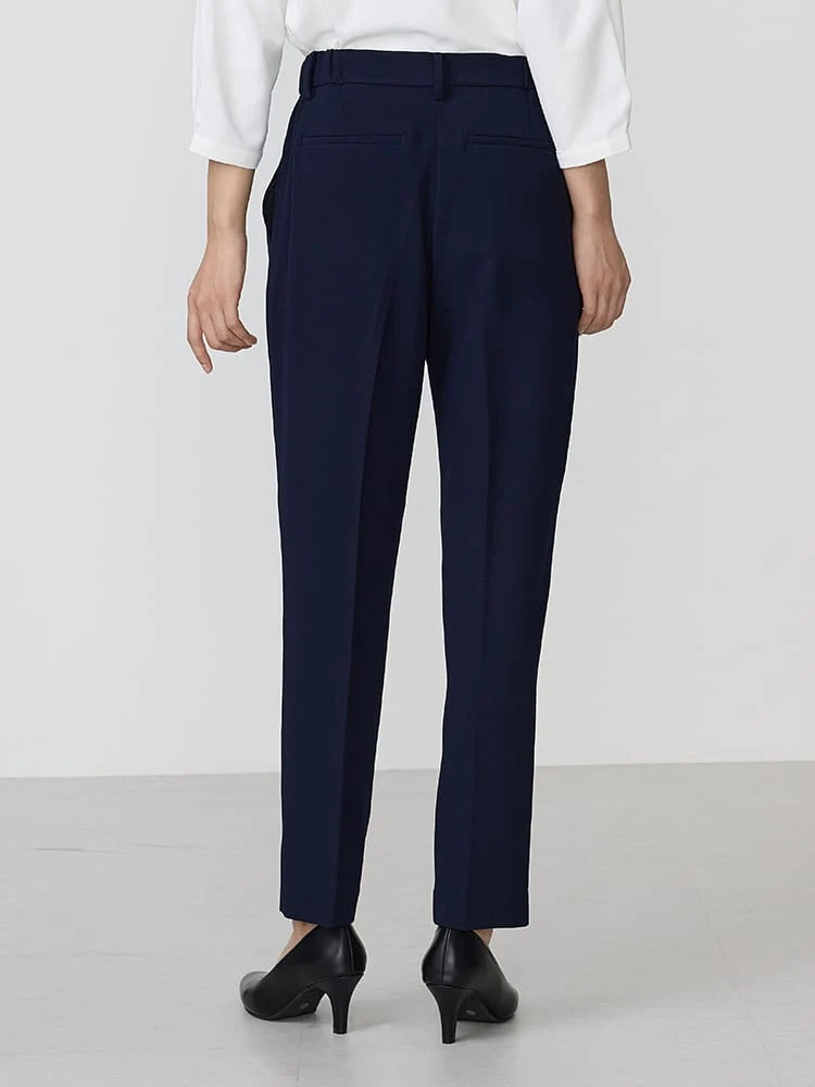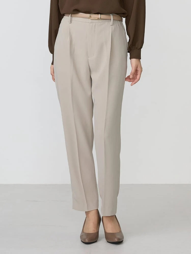 軽快なアンクル丈は、ヒールパンプスやフラットシューズ、どちらもバランス良く合わせることができます。