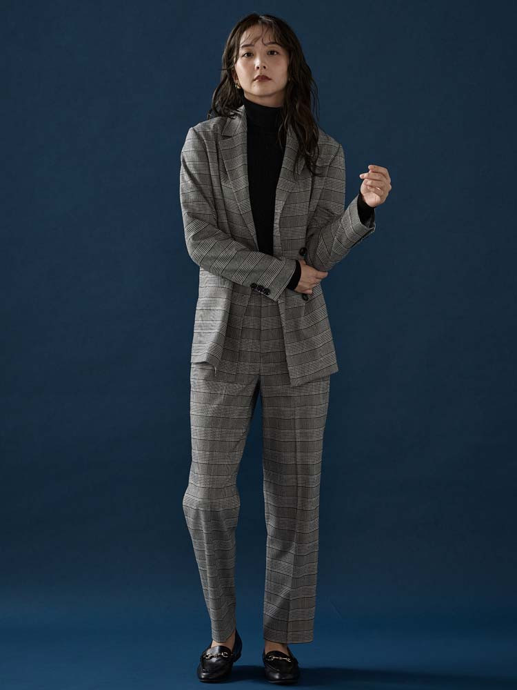 単体での着回しやすさはもちろん、同素材のパンツとセットアップでそろえるのがおすすめ。