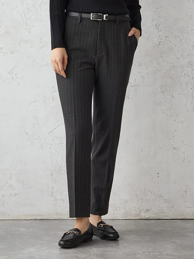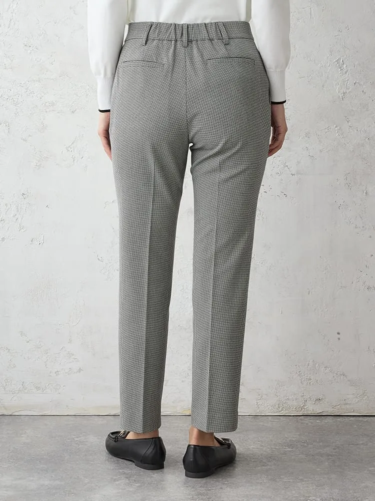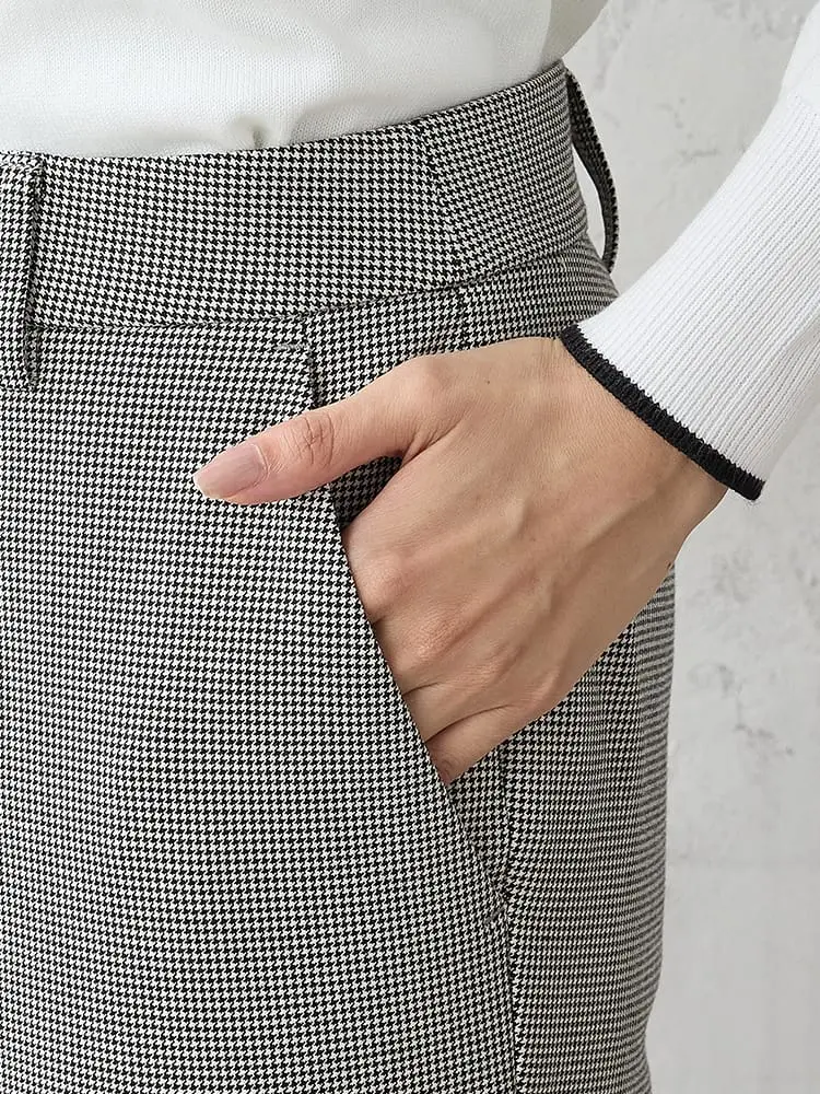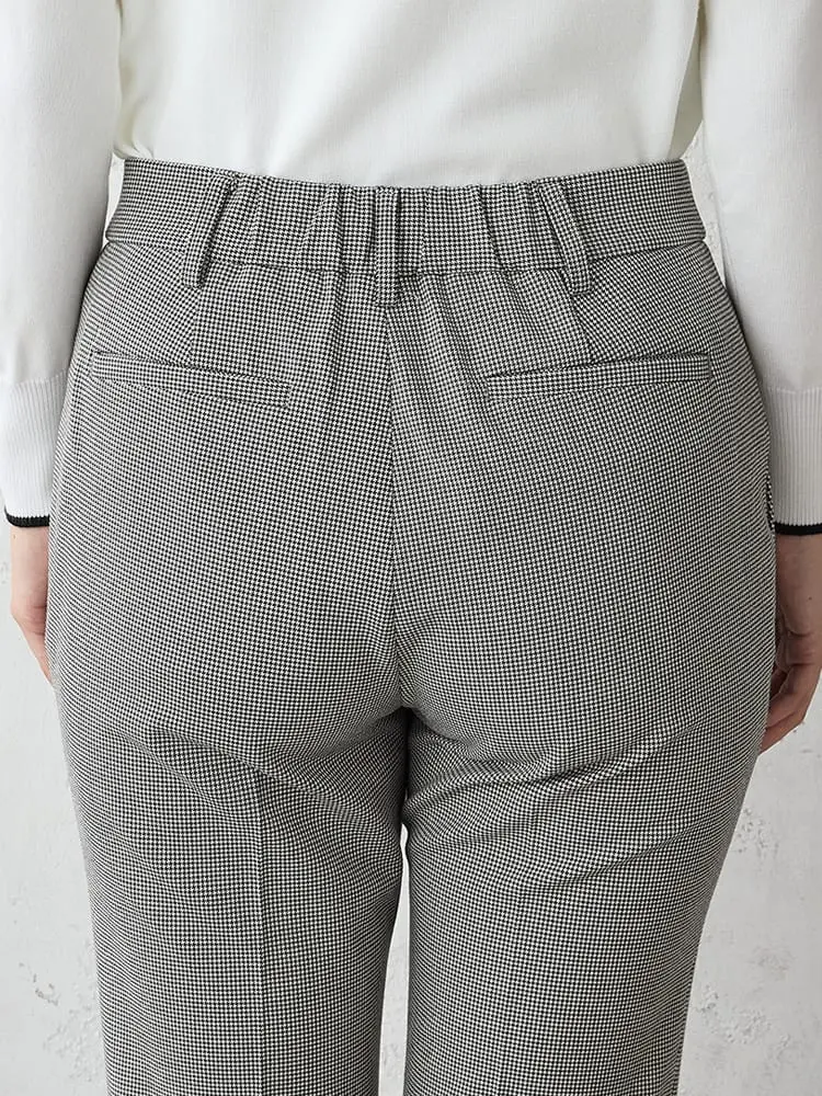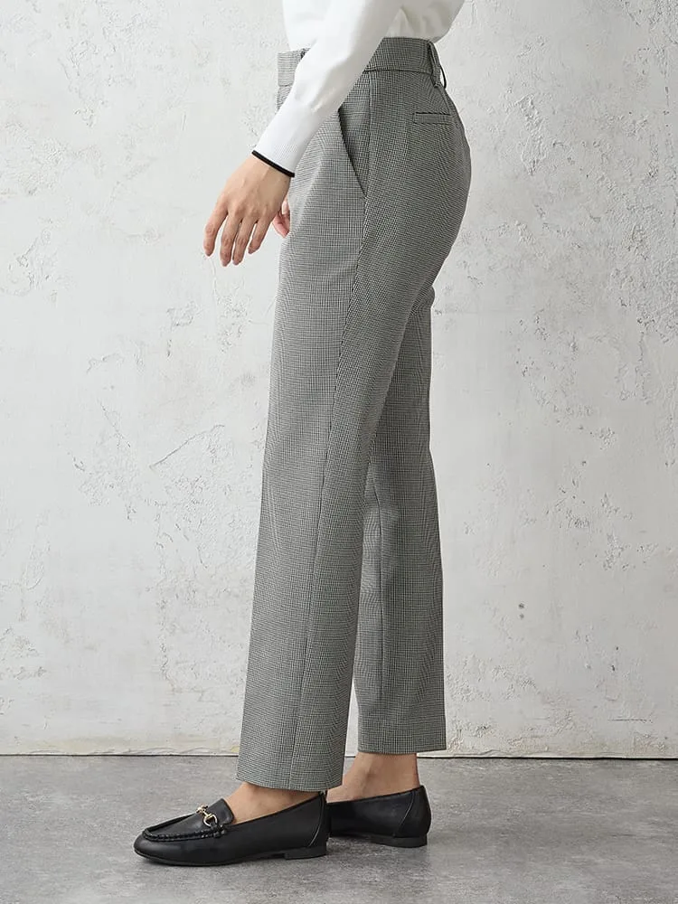 <あたたか裏起毛>テーパードパンツ 無地/ストライプ/千鳥柄(ブラック)