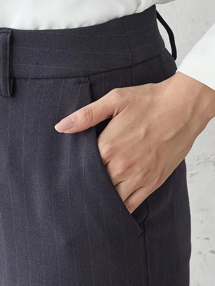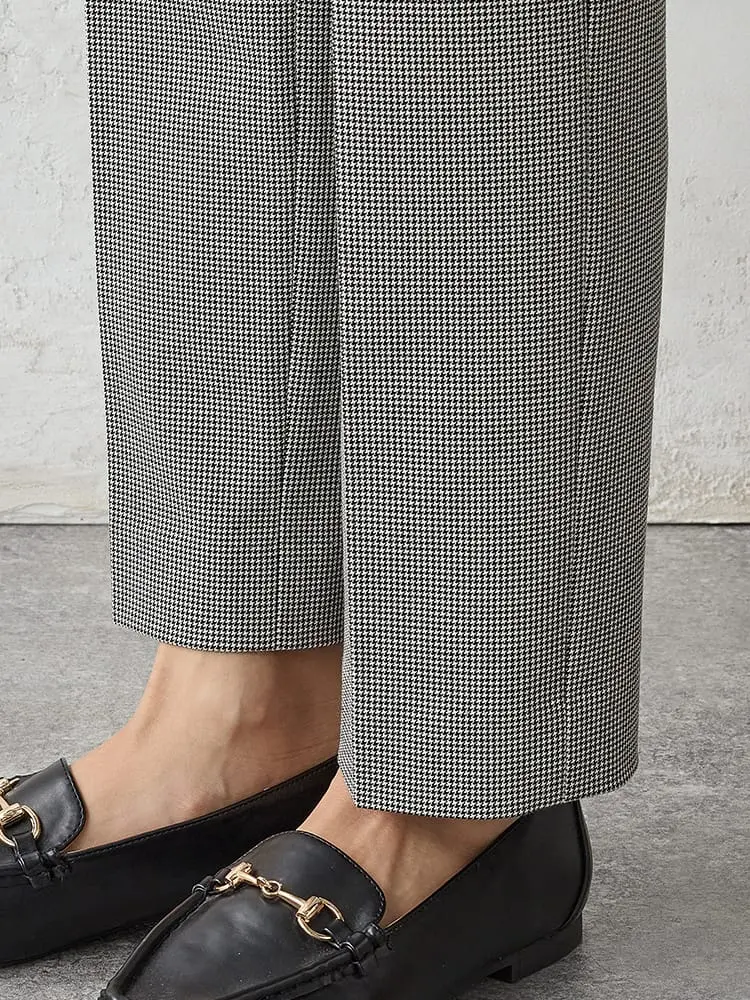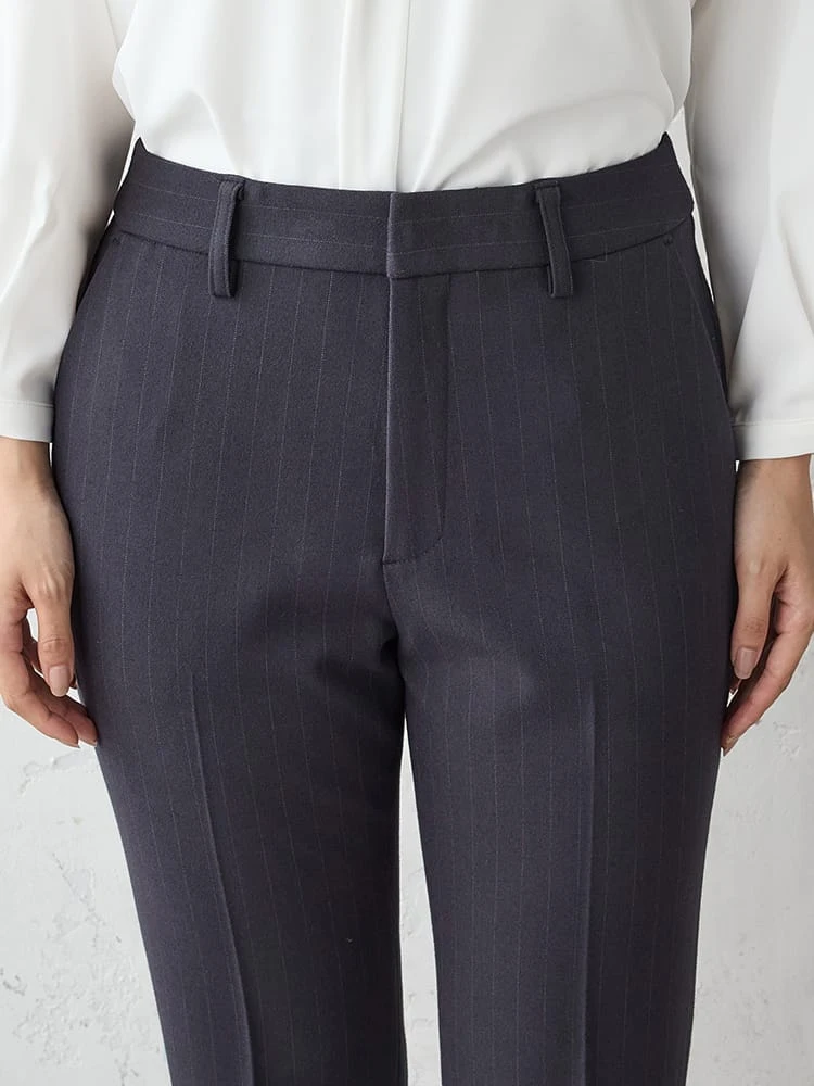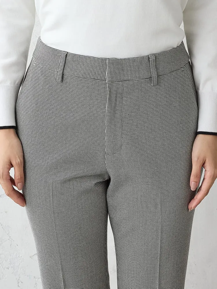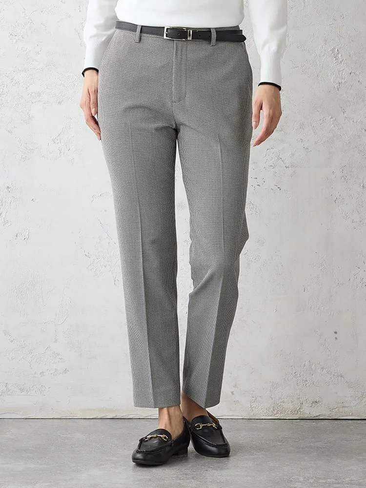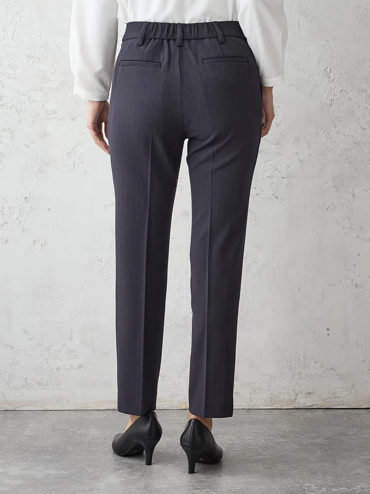<あたたか裏起毛>テーパードパンツ 無地/ストライプ/千鳥柄(ブラック)