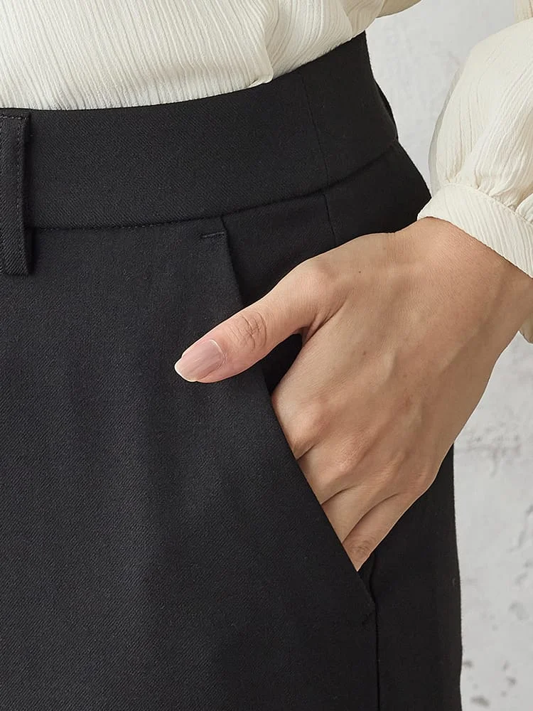 シルク混リクルートスーツセミフレアーパンツ無地ブラック 価格: 11,990円(税込)10%off