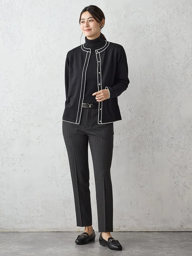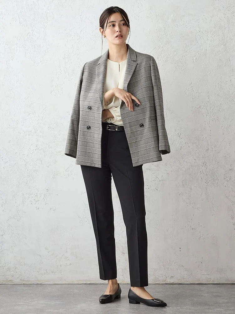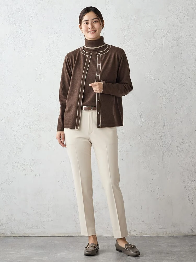 オフィスから休日のカジュアルスタイルまで幅広いシーンで着まわせるアイテムです。