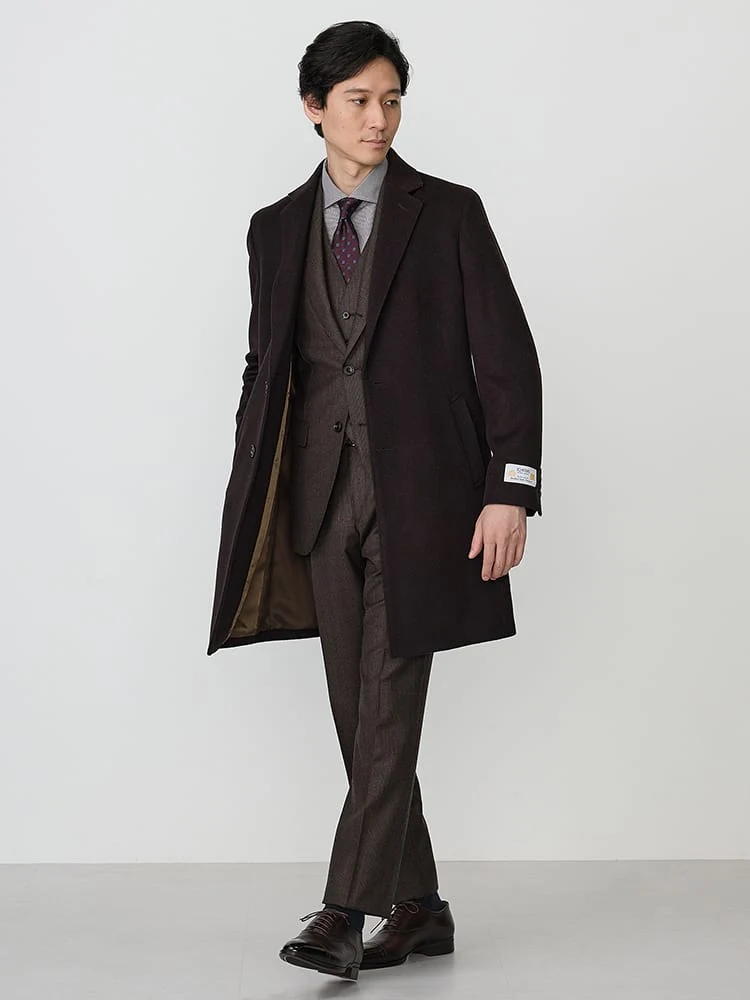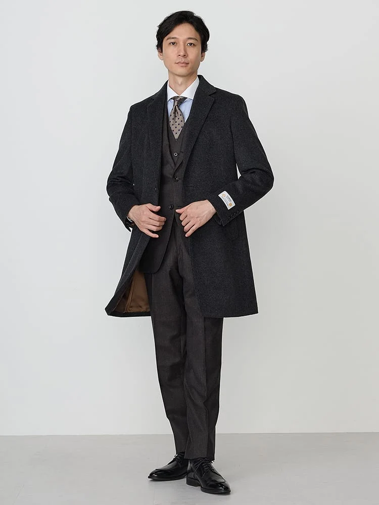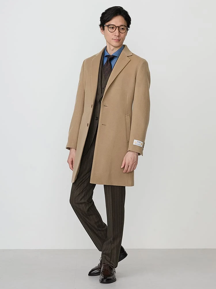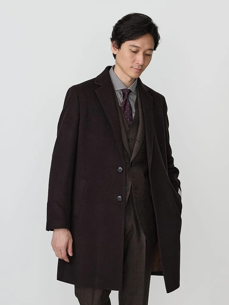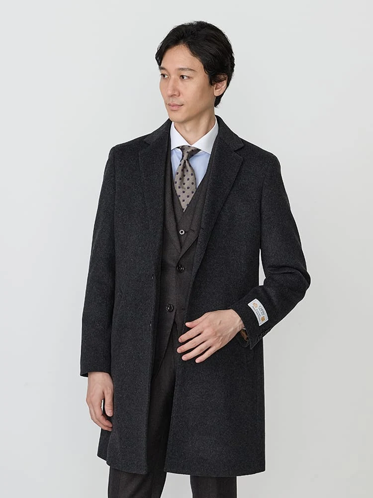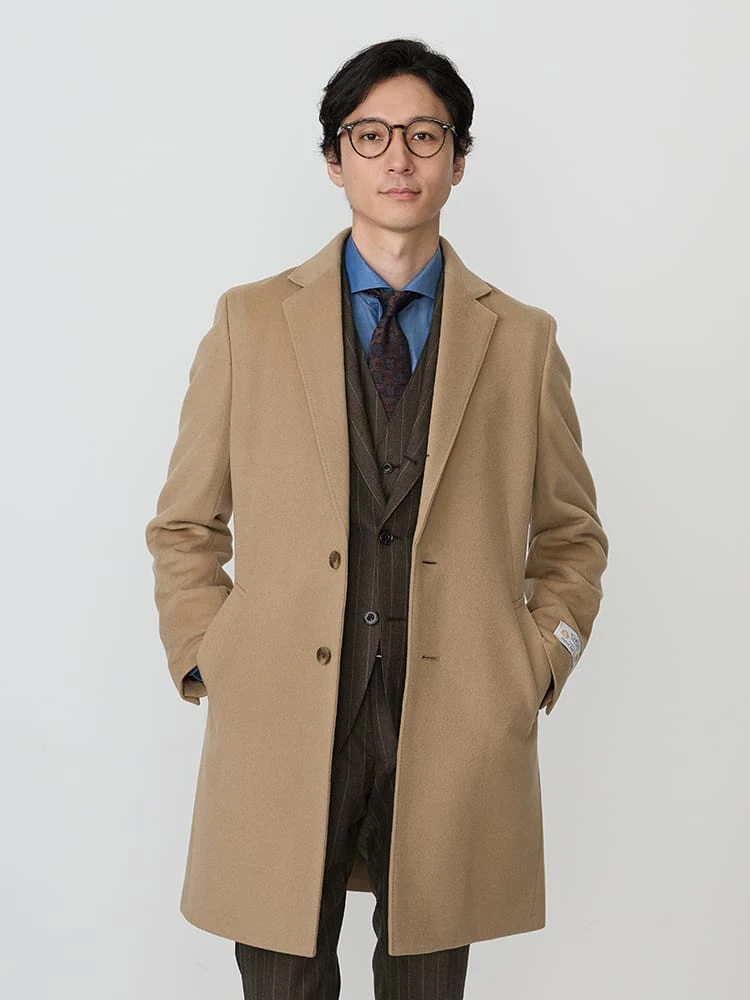 着こなしやすいベーシックなデザインのチェスターコート。