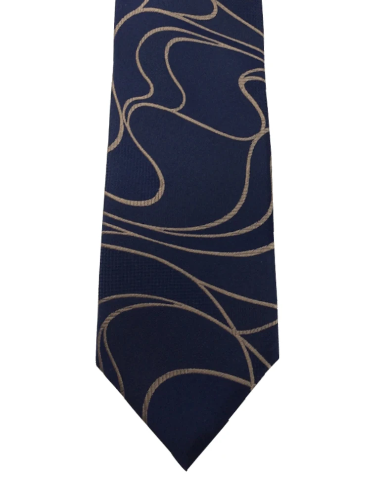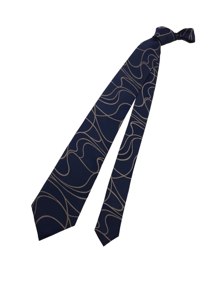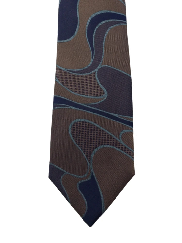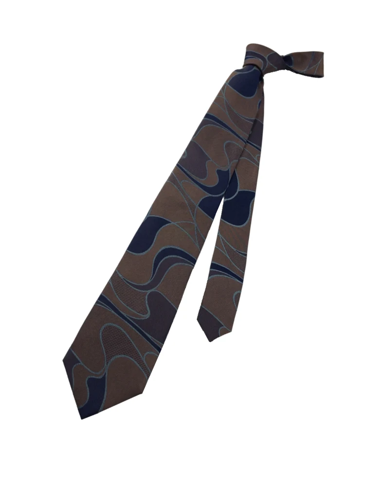 TRANS CONTINENTS 日本製ネクタイ シルク100% ウェーブ柄 ブラウン/ネイビー(ブラウン)