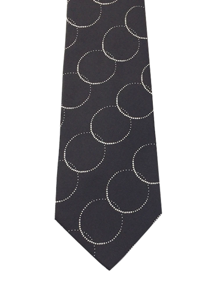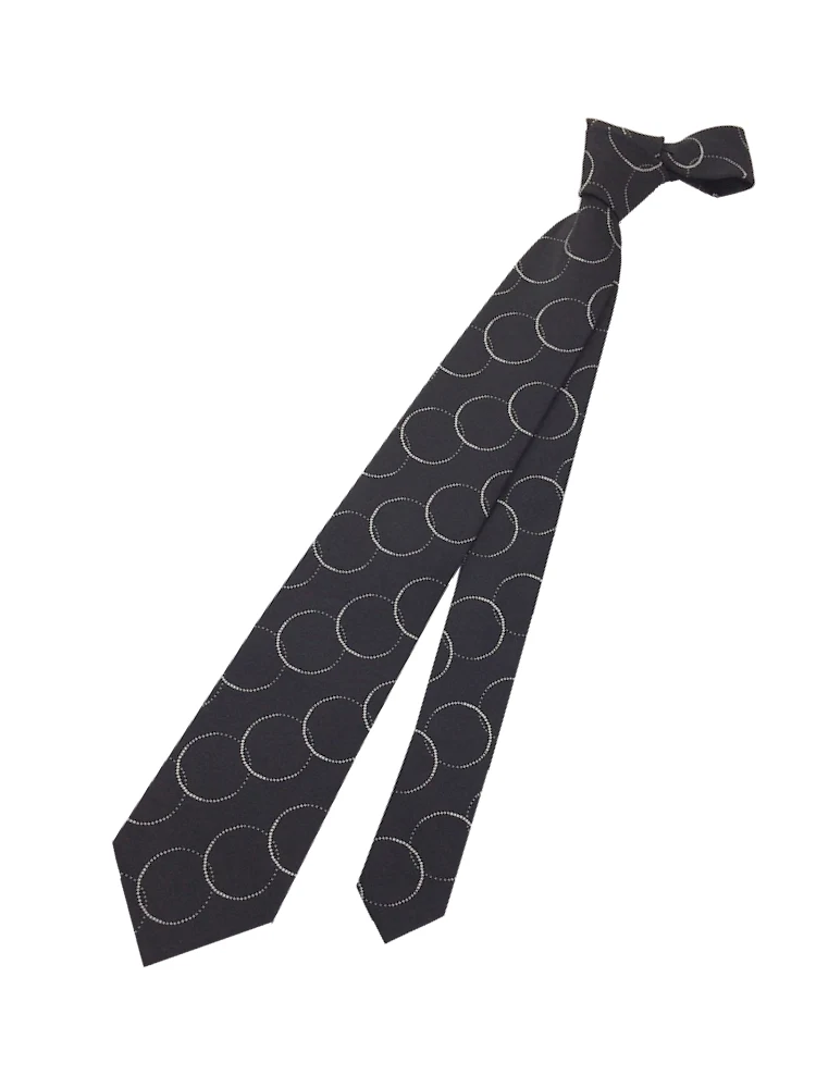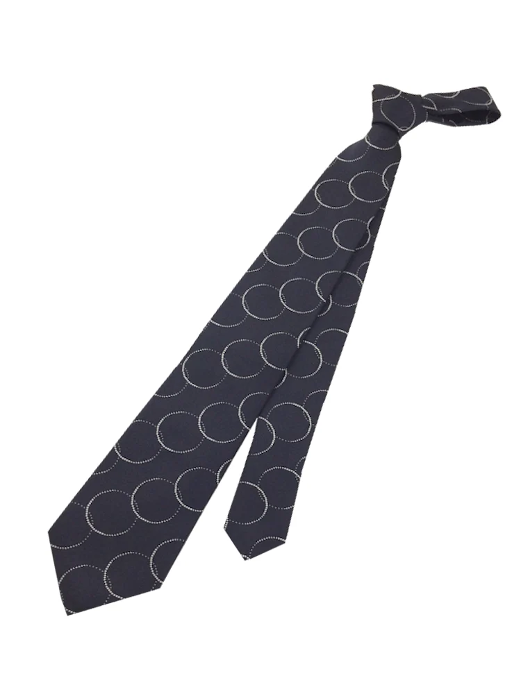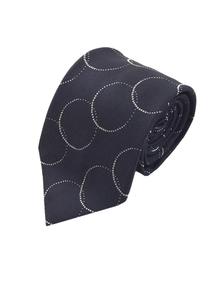 モダンブラックシリーズネクタイ シルク100% サークル柄 ブラック/ブラウン/ネイビー(ネイビー)