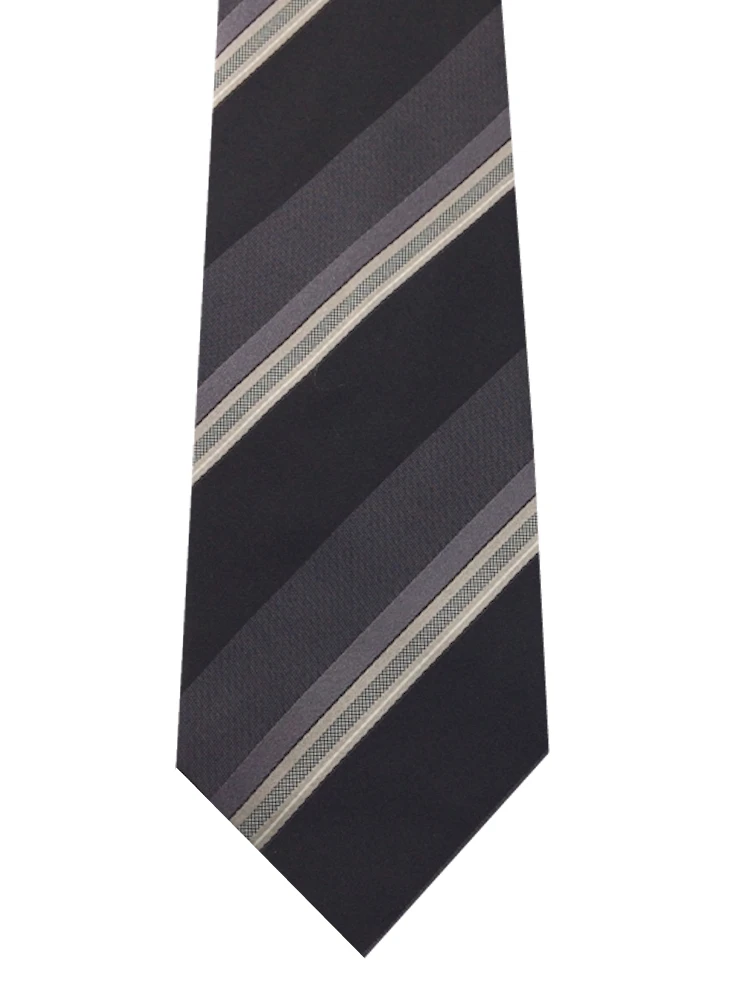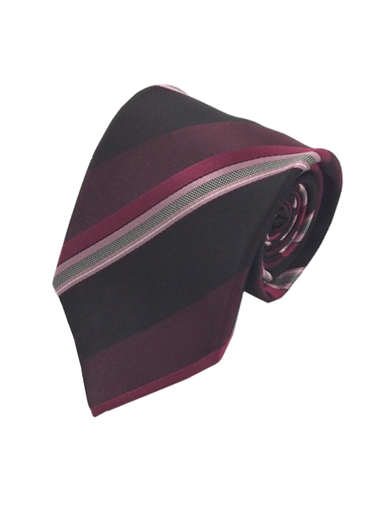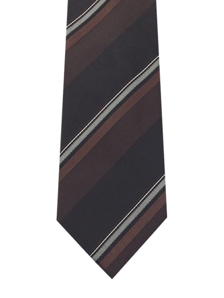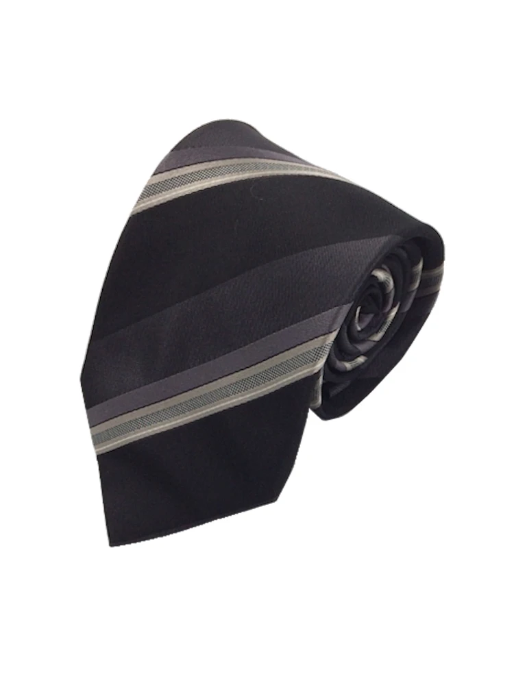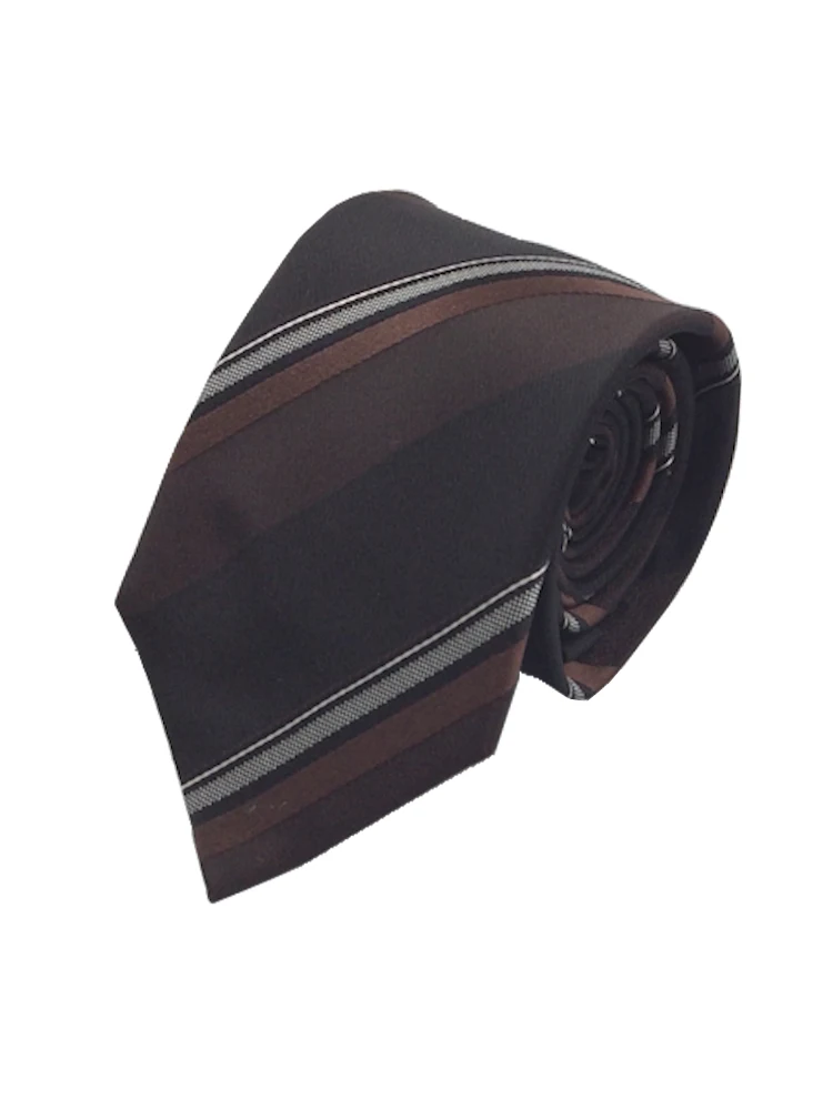 モダンブラックシリーズネクタイ シルク100% ストライプ グレー/ワイン/ブラウン(ブラウン)