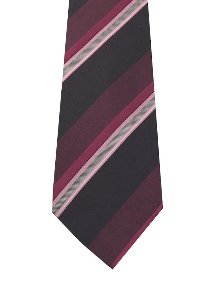 TRANSCONTINENTS日本製ネクタイシルク100%ストライプワイン/ブラウン/ネイビー
