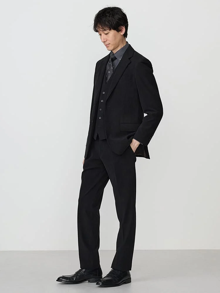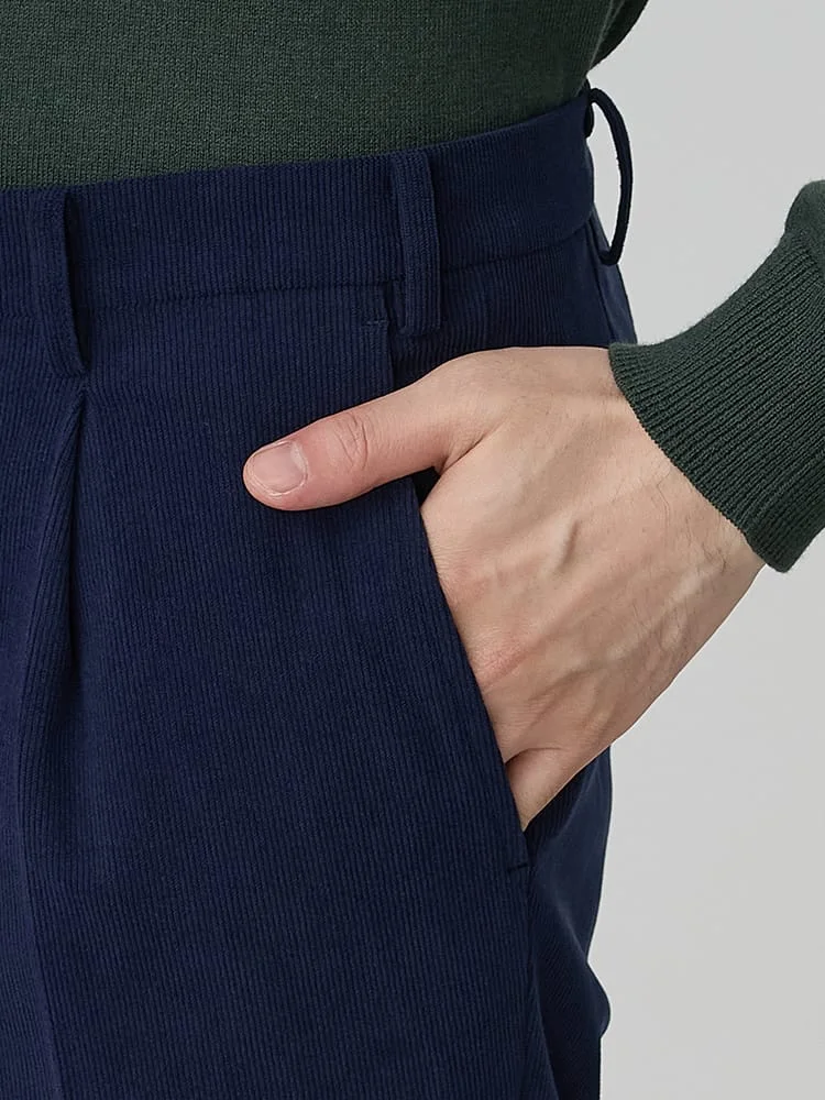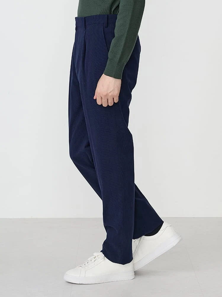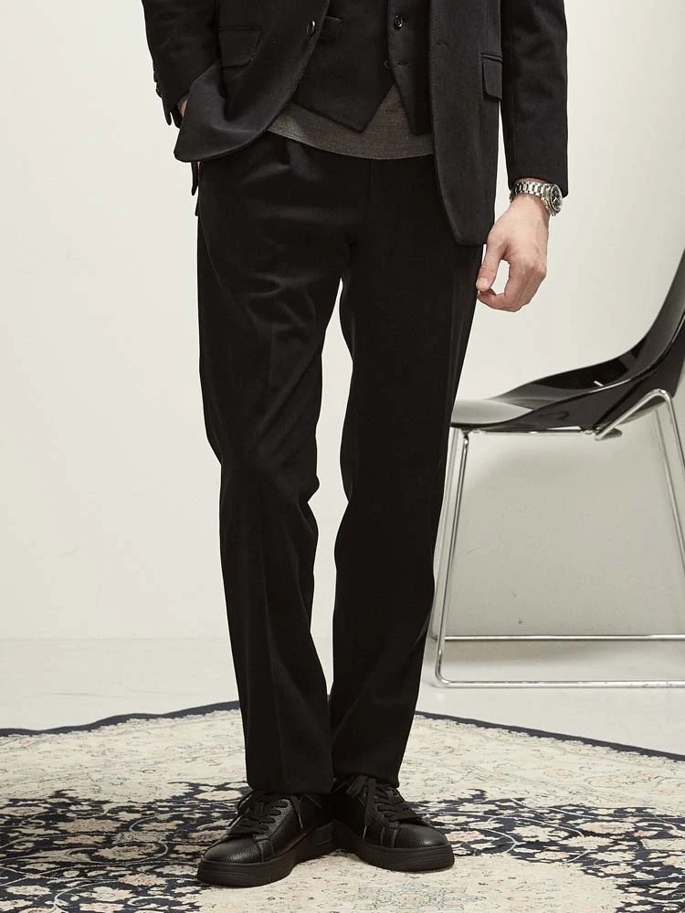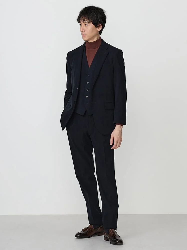 ポリエステルのトリコットコーデュロイ生地のセットアップパンツ。
