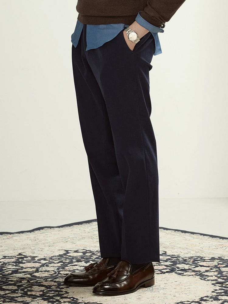 「DEEPSEA」カラーTRANSCONTINENTS【ウール100%】ボンディングツータックパンツカーキ/ネイビー