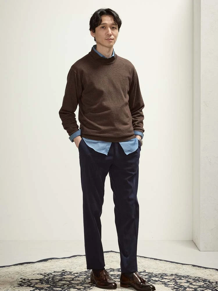 【EDWINコラボ】デニムライクウールセットアップパンツブラウン/カーキ/ブルー