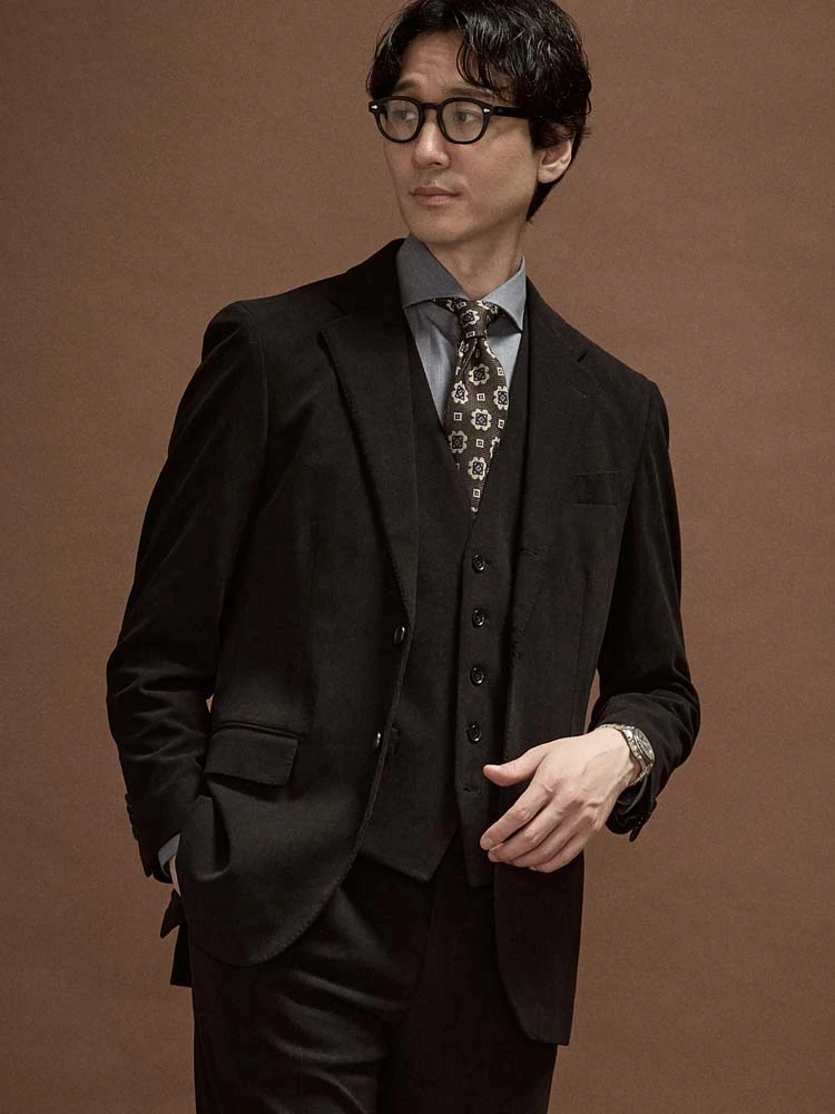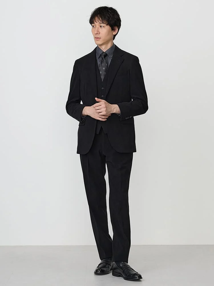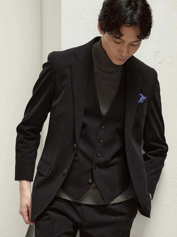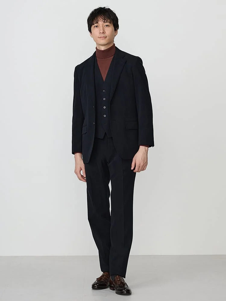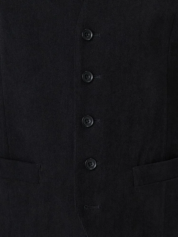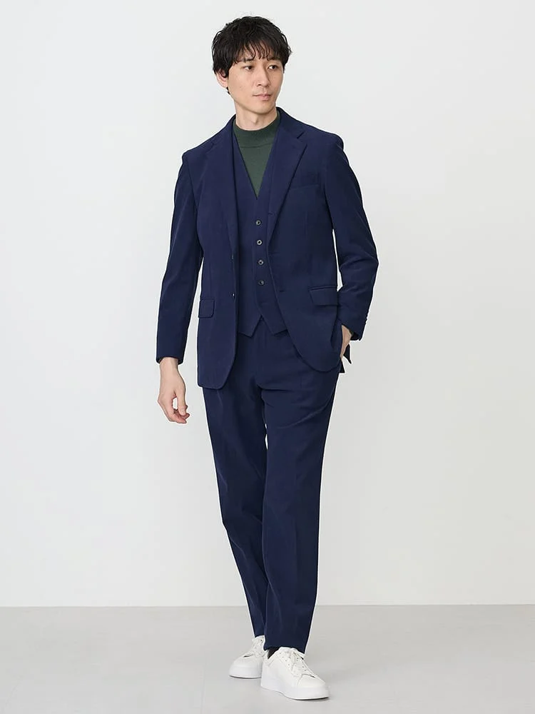 ポリエステルのトリコットコーデュロイ生地のセットアップベスト。