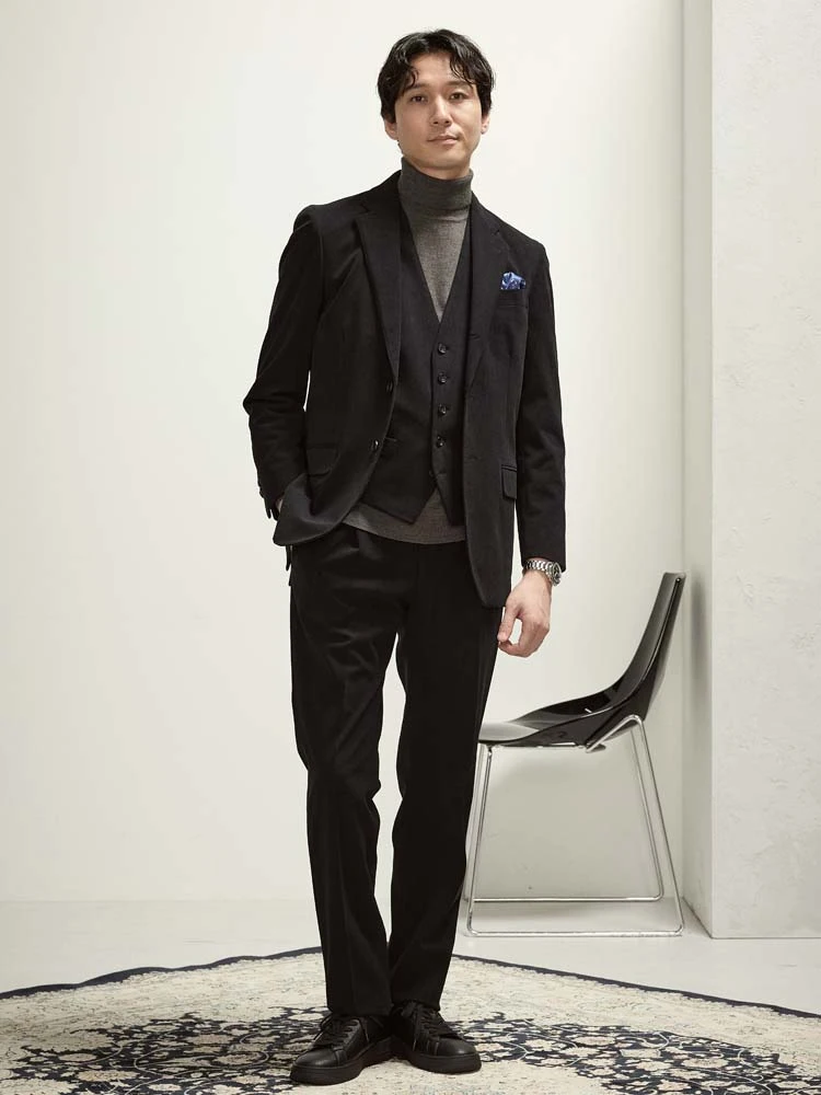 TRANSCONTINETNSコーデュロイセットアップジャージトリコットジャケットブラック/ブルー/ネイビー