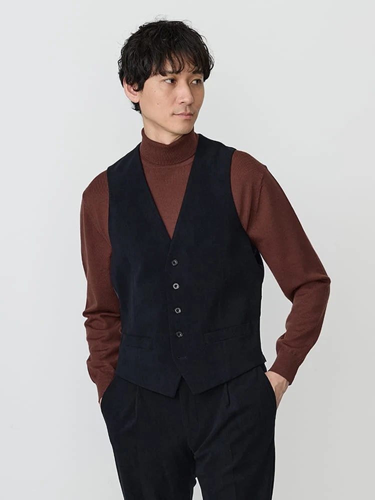 EDWINウール混デニムライクベストブラック/ベージュ/ブルー/ネイビー