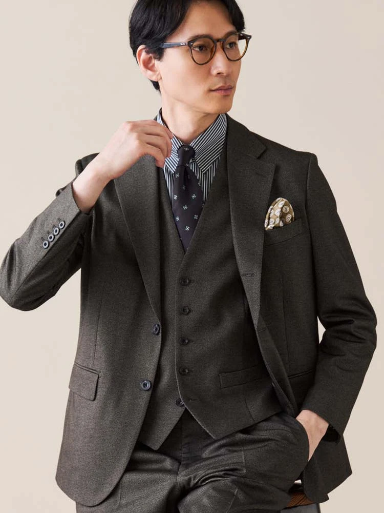 シルクネップホームスパンベストグレー/ブラウン/ネイビー