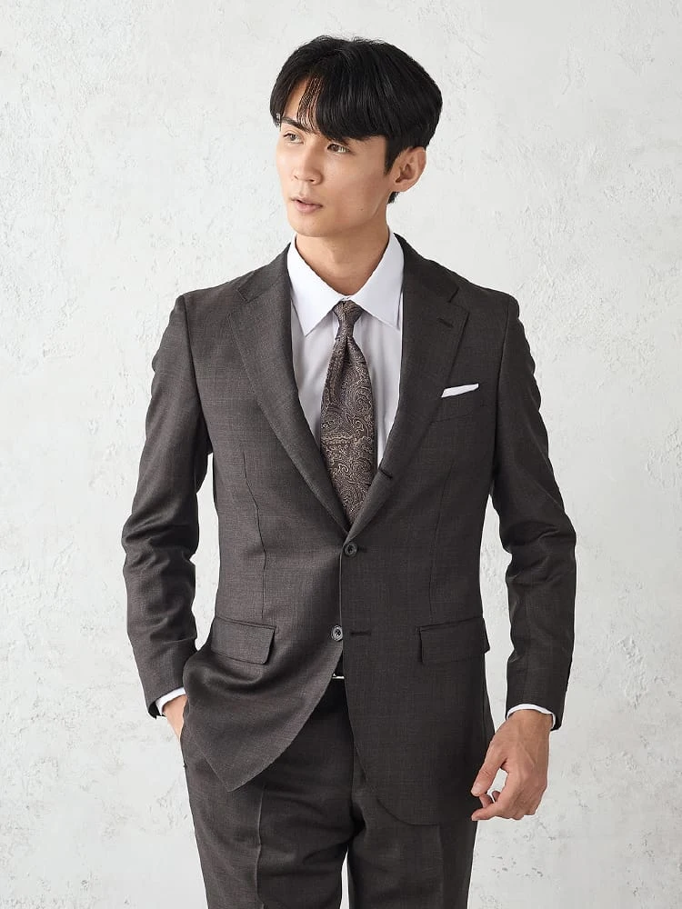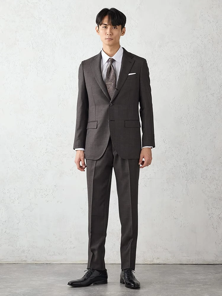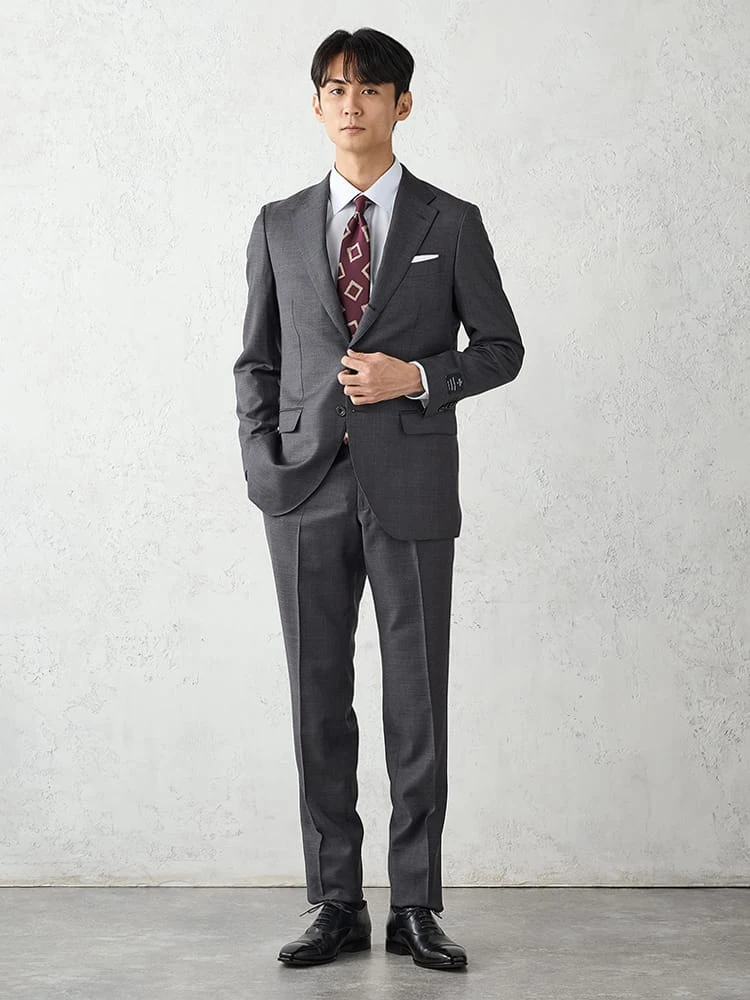 落ち着いた雰囲気とモード感を併せ持つスーツ。
