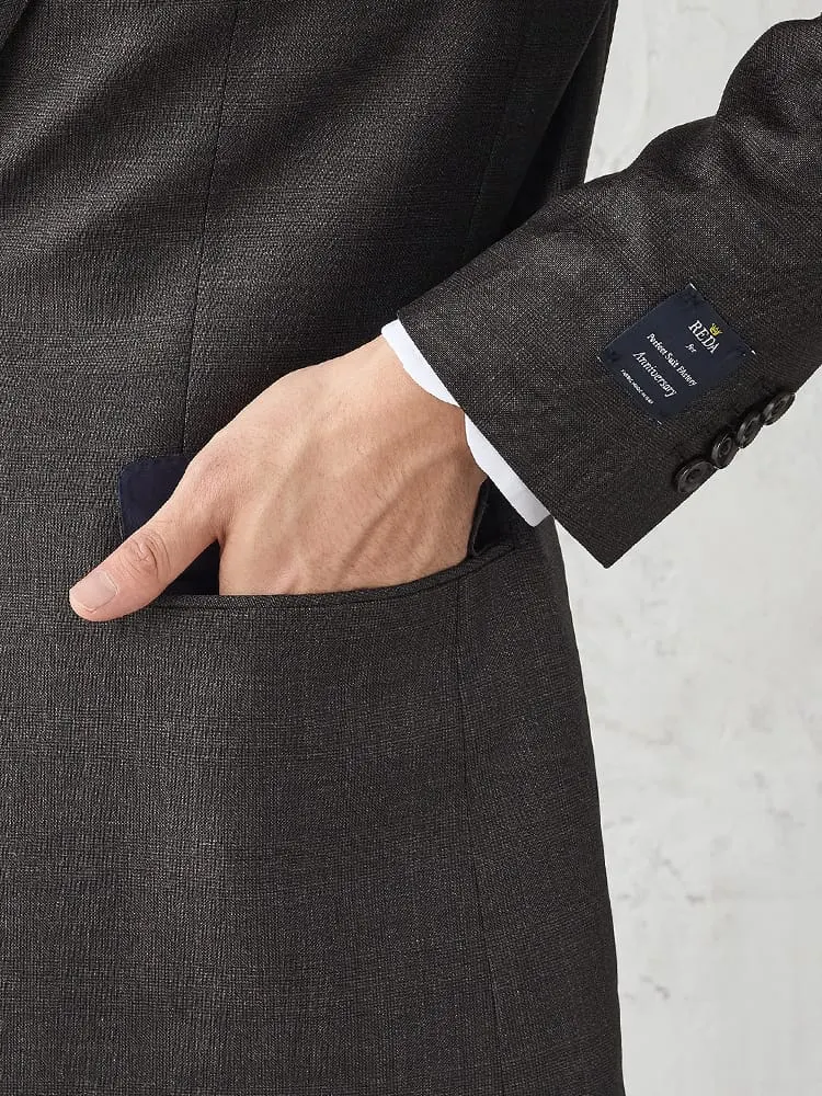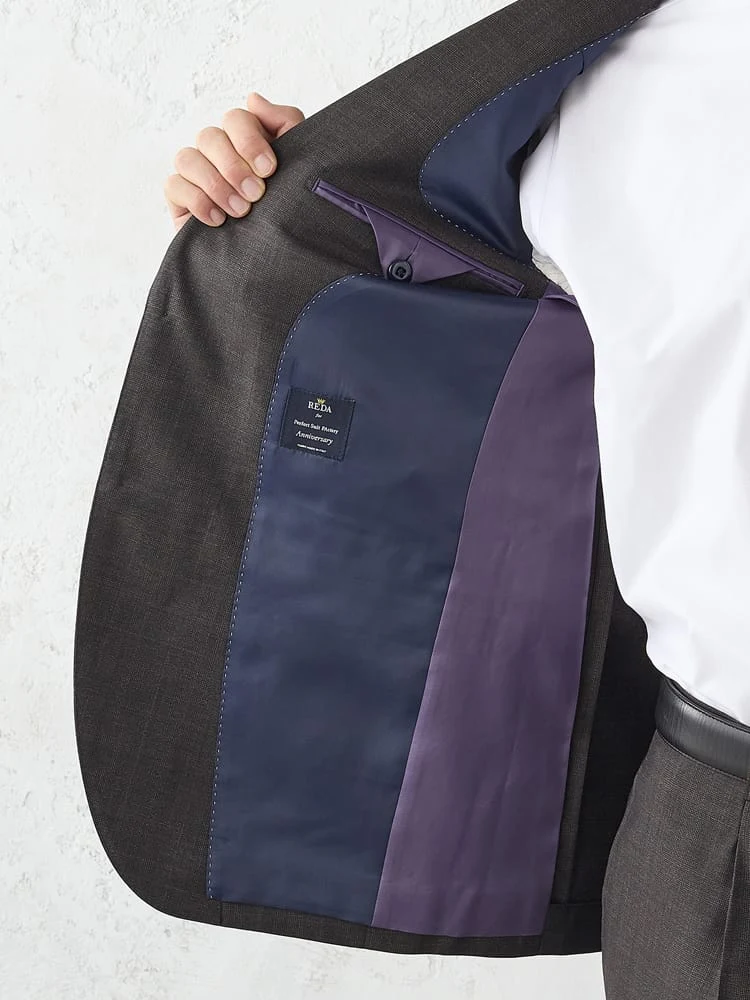 【REDA/Super110'S】TRANS CONTINENTS ウール100% 3つ釦スーツ チェック グレー/ブラウン(M.グレー)