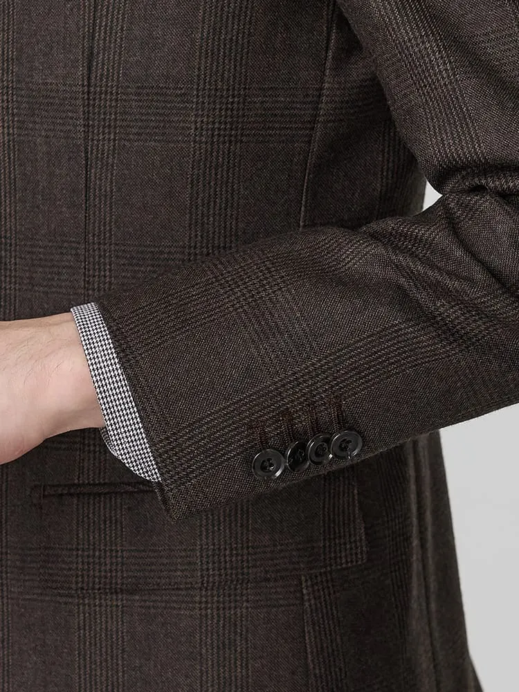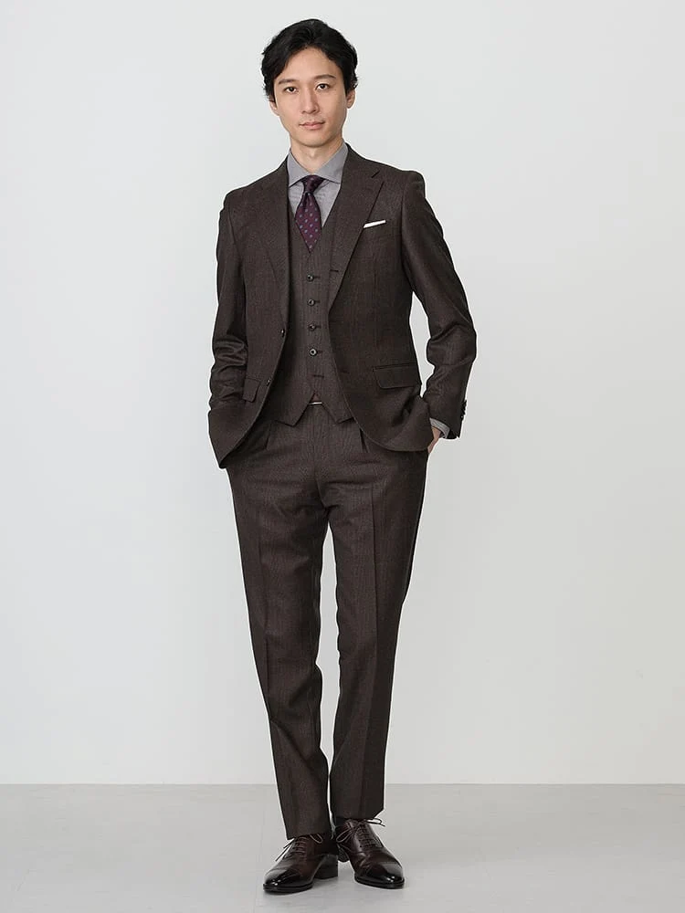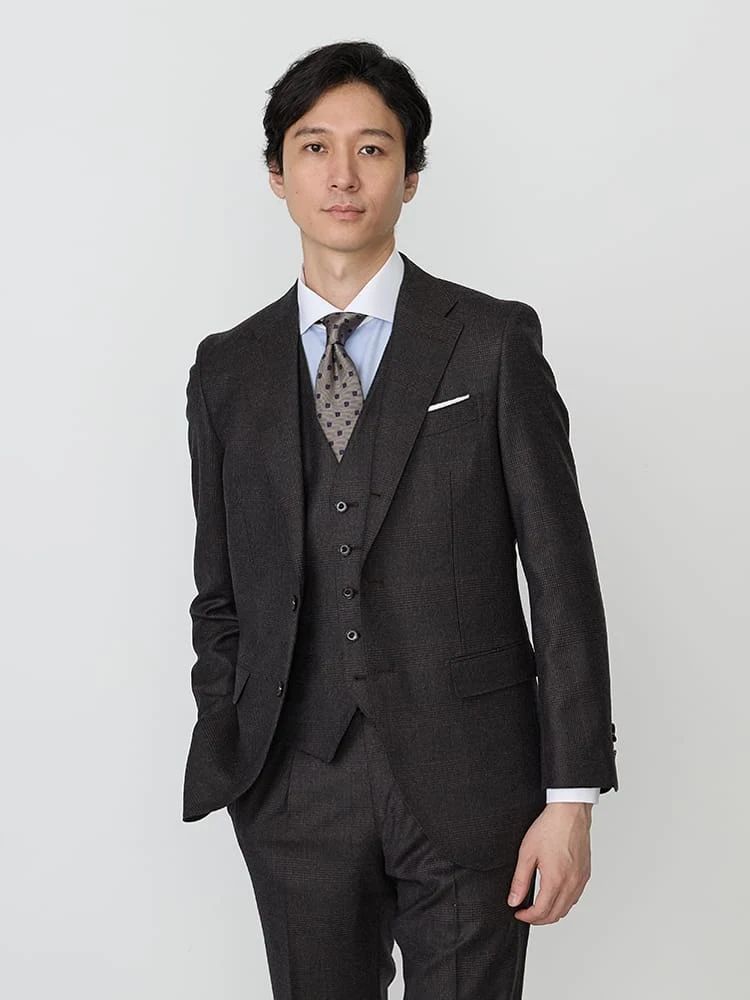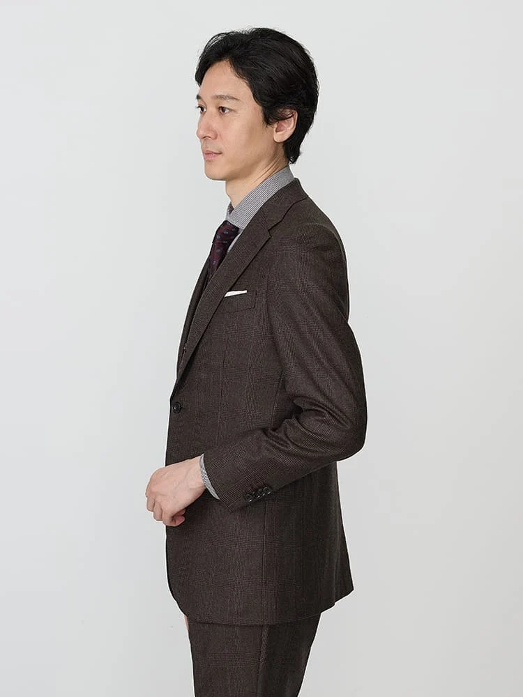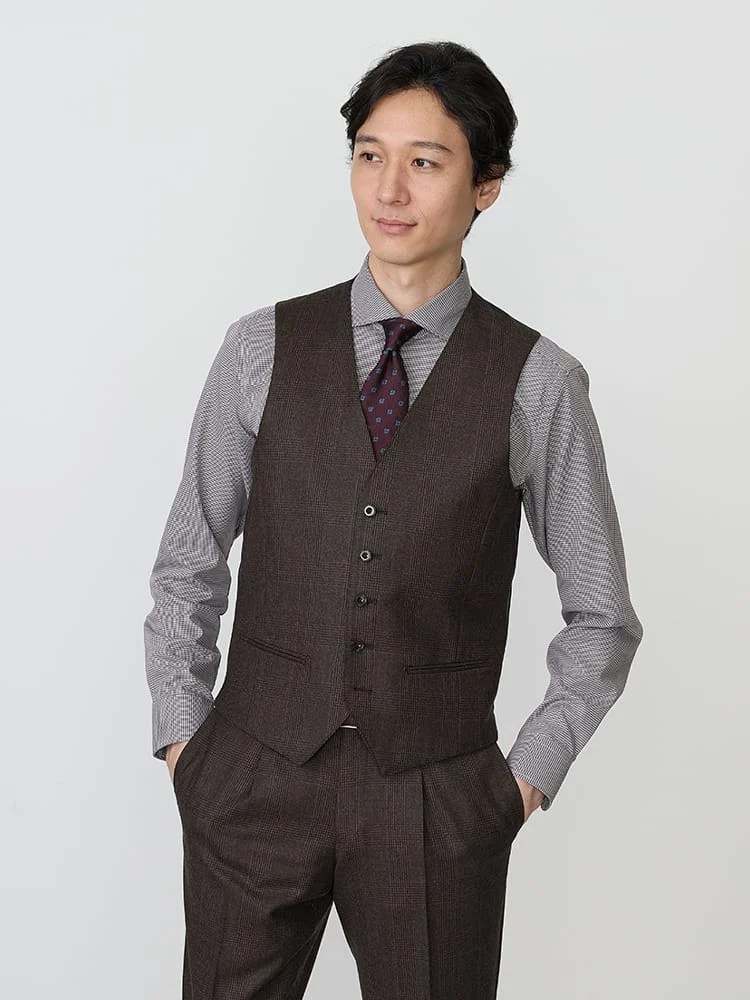【上下洗える】スリーピーススーツグレンチェック【クラシコ】ブラウン