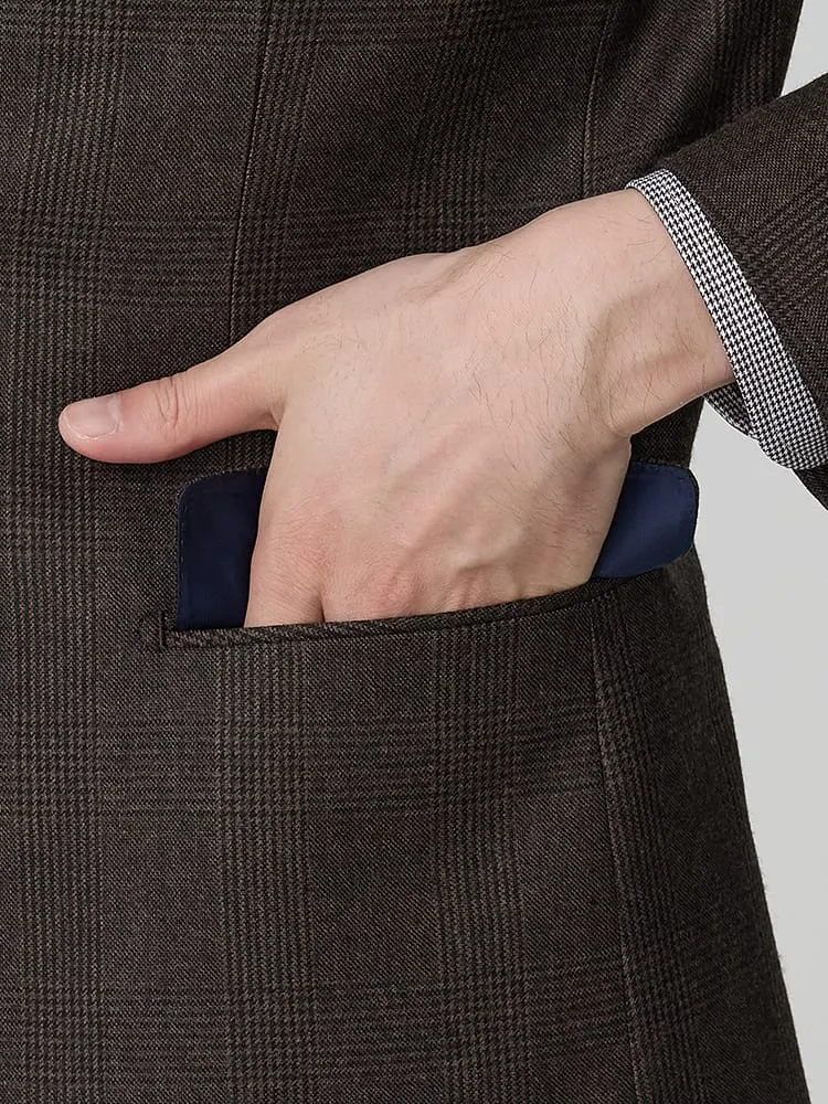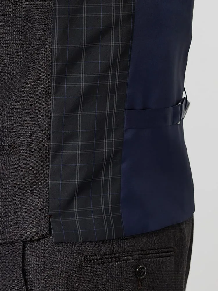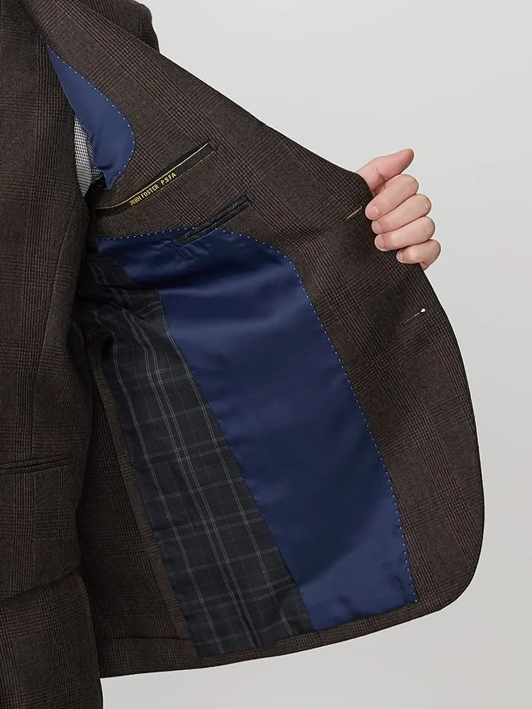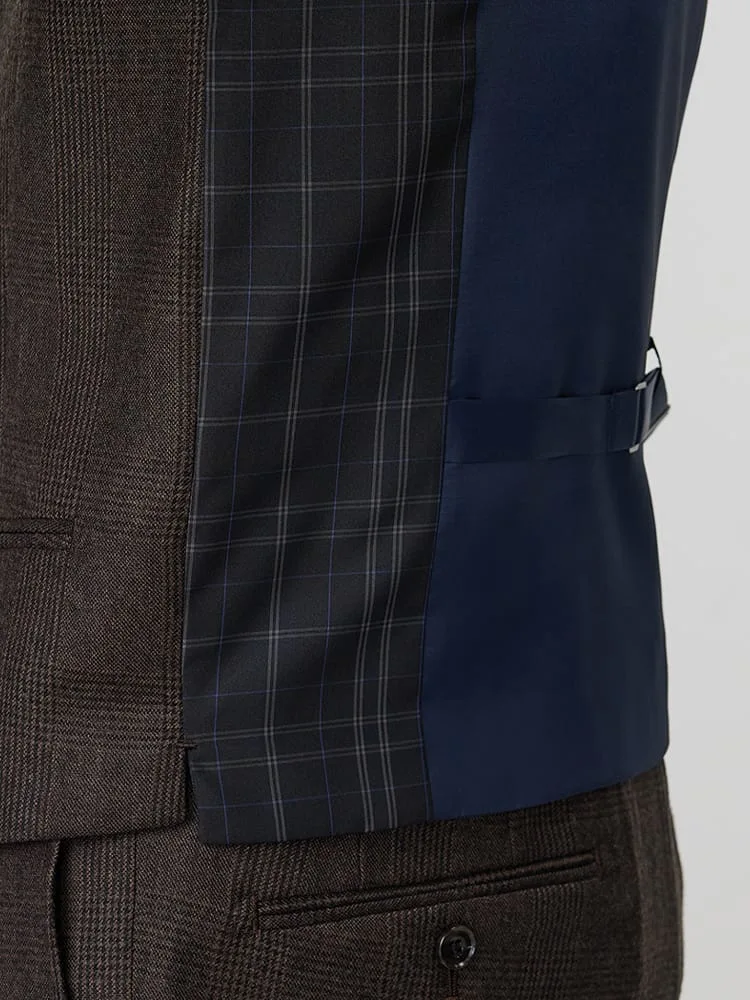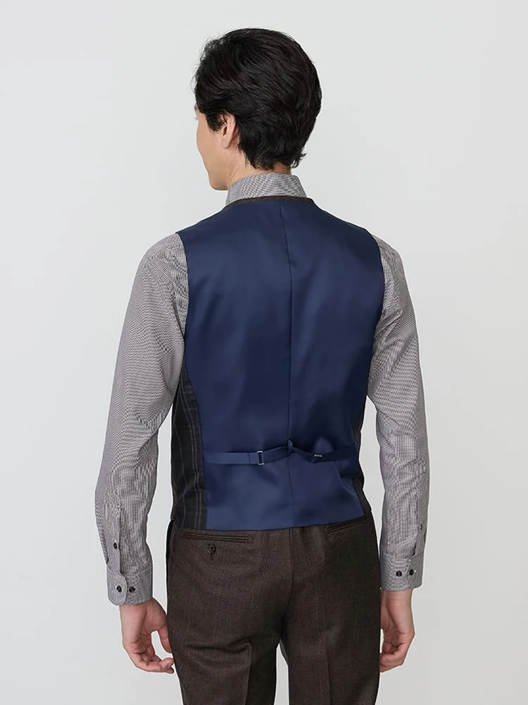 【上下洗える】スリーピーススーツグレンチェック【クラシコ】ブラウン