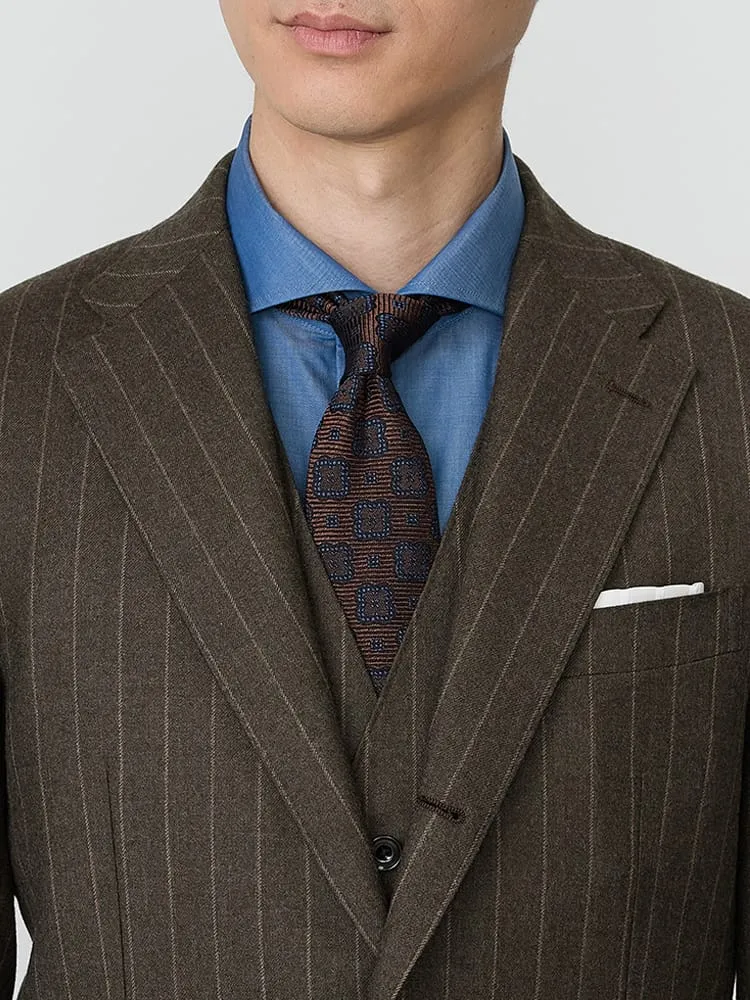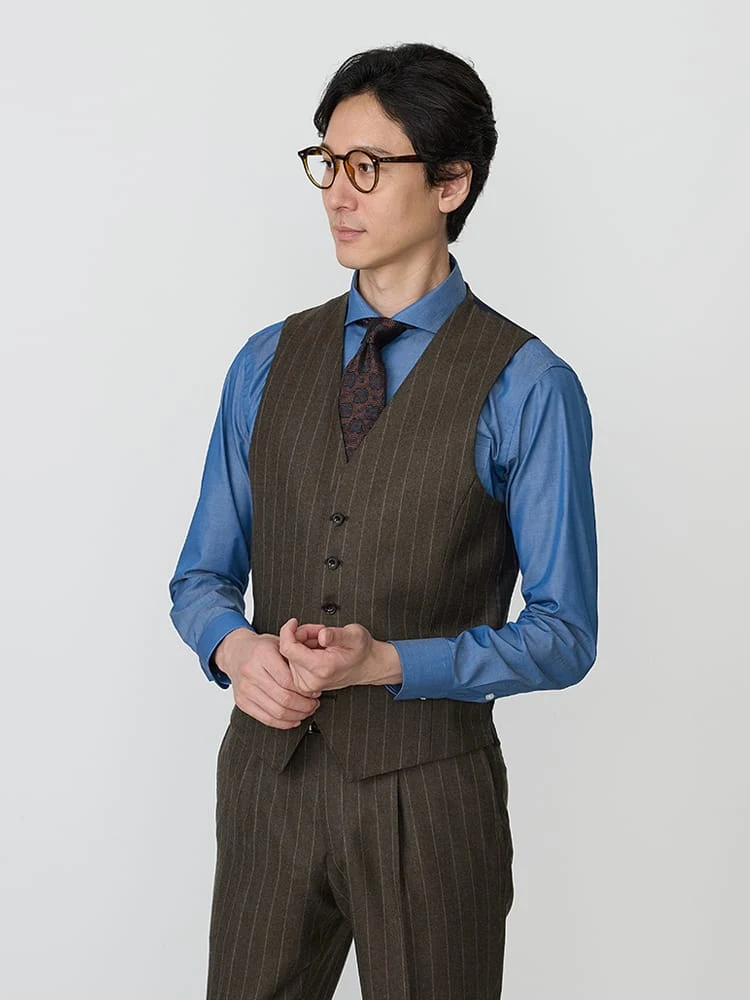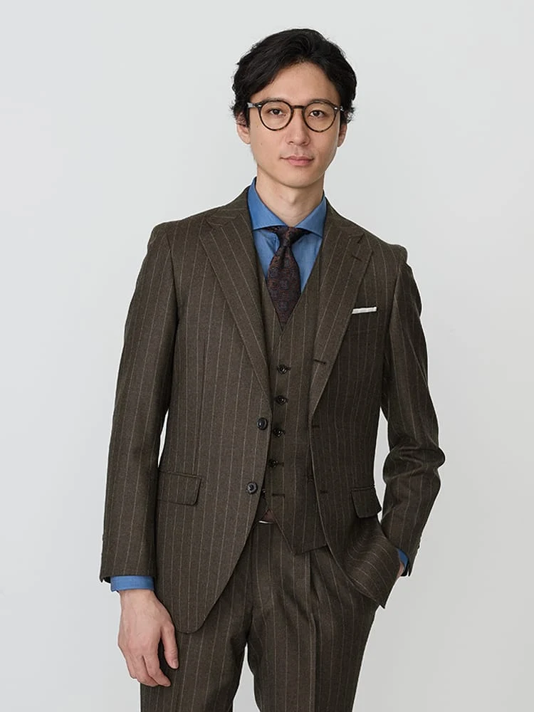【Super100S】ウール100%スリーピーススーツ無地調ブラウン