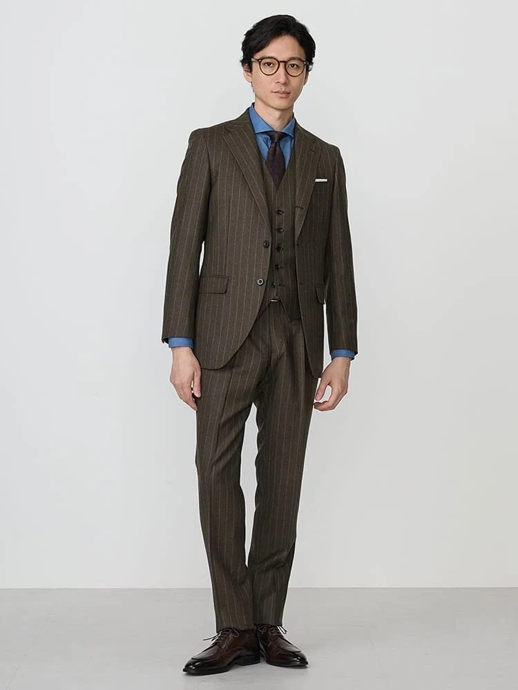 【JOHN FOSTER(ジョン・フォスター)】スリーピーススーツ アーバン ストライプ カーキ