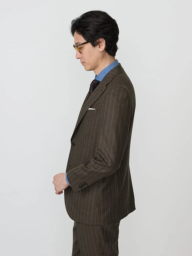 《WOOLYWASHSUIT》WEB限定スーツ【洗える/ウールライク】ストライプブラウン