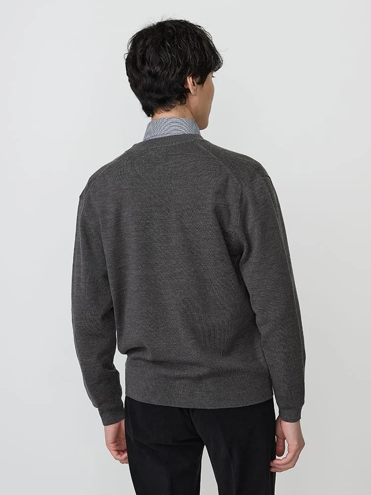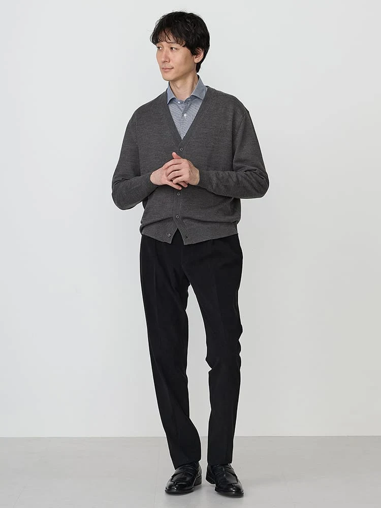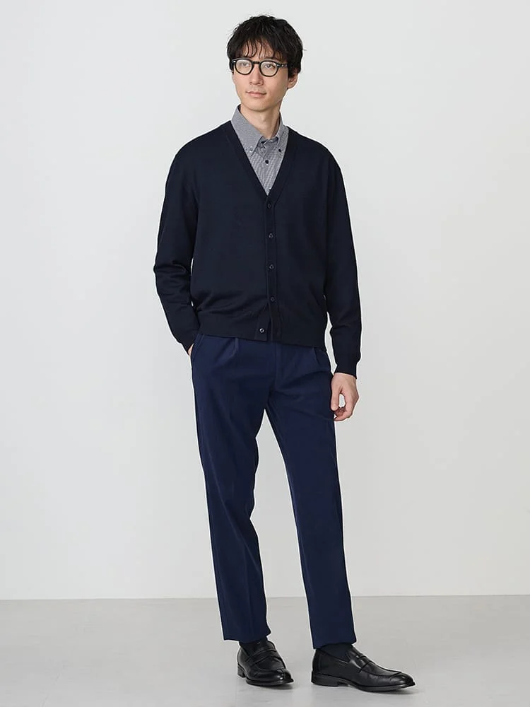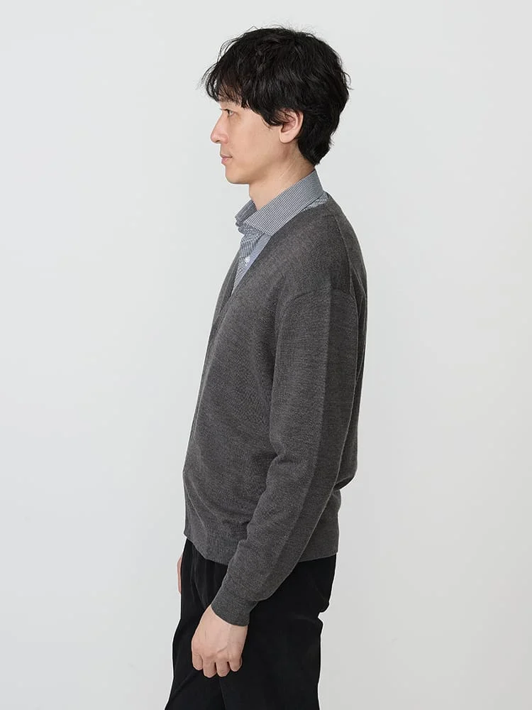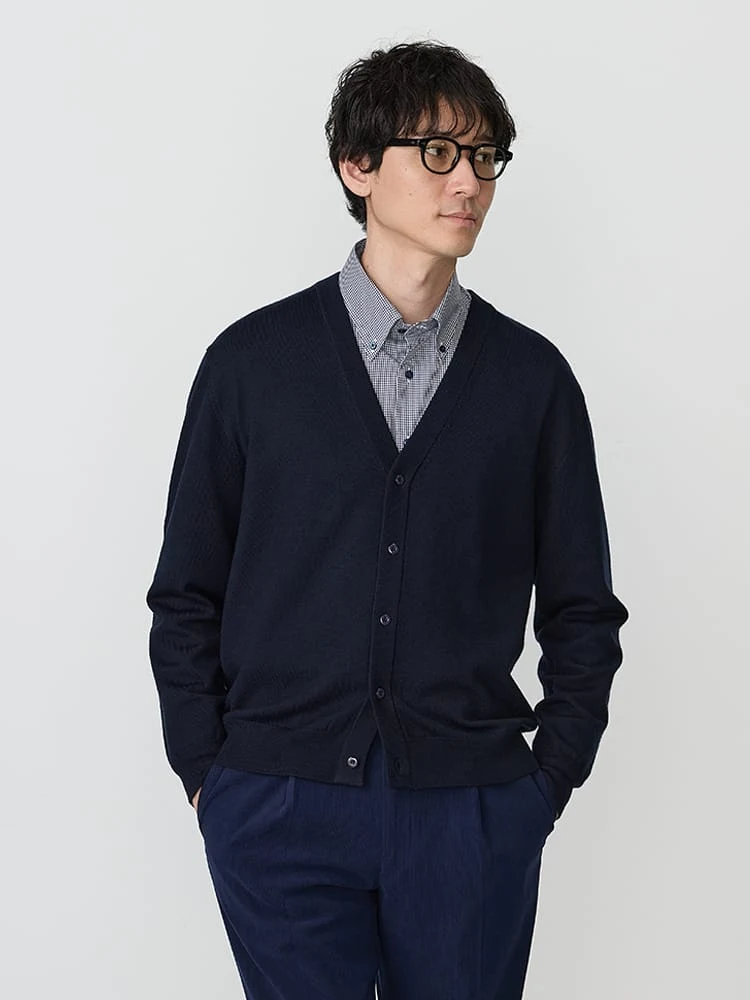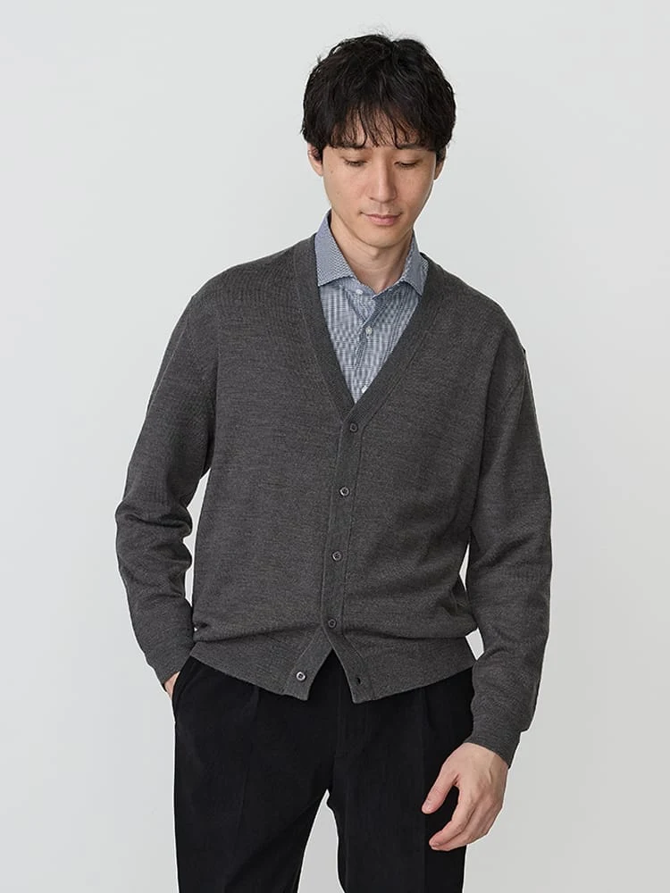 使い勝手が良いVネックのニットカーディガン。