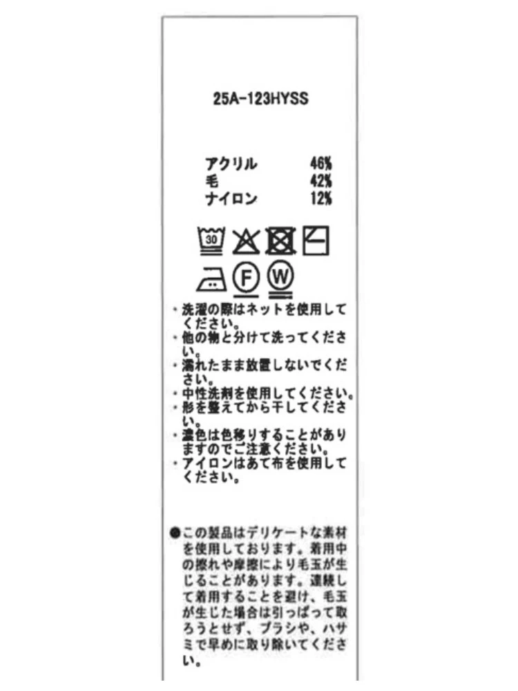 素材 | アクリル46% ウール42% ナイロン12% |
