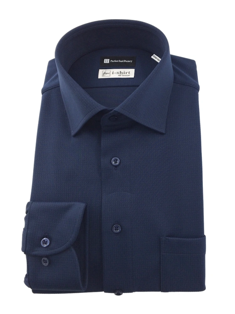 【完全ノーアイロン】長袖アイシャツ ダークカラー 千鳥柄 ブラック/ワイン/ブラウン/ネイビー<2点で1,000円/3点で2,000円OFF!>(ネイビー)