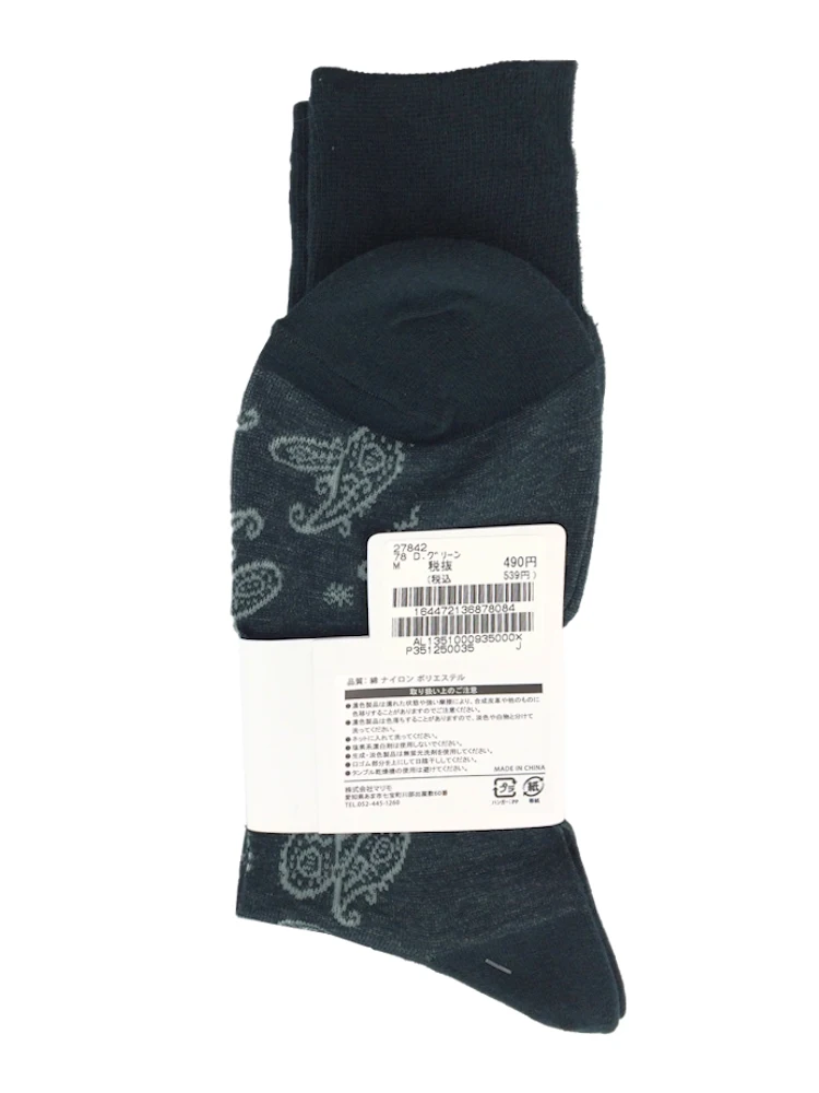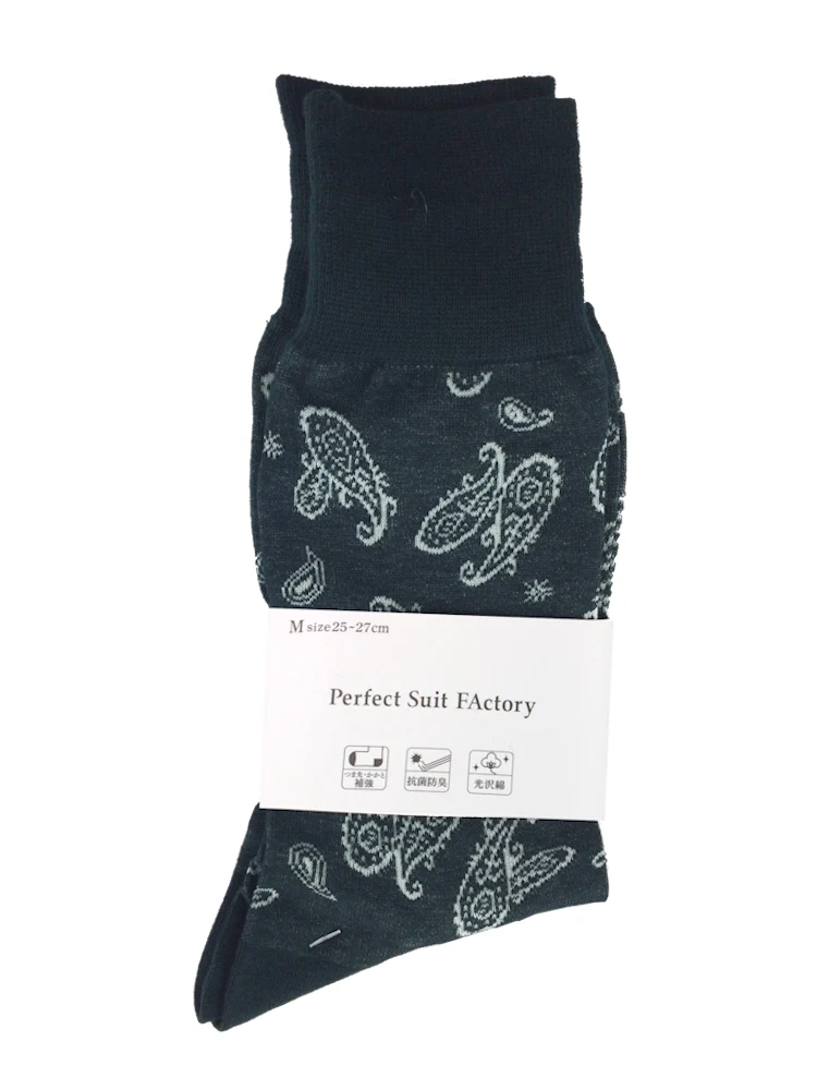 【抗菌防臭】無地ペイズリーソックス(ブラック)
