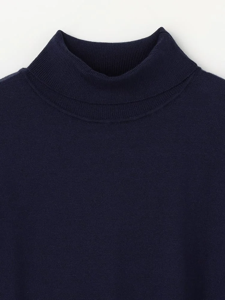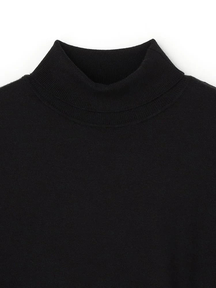首元を折り返して着られてあたたかい、知的なタートルネックニットです。