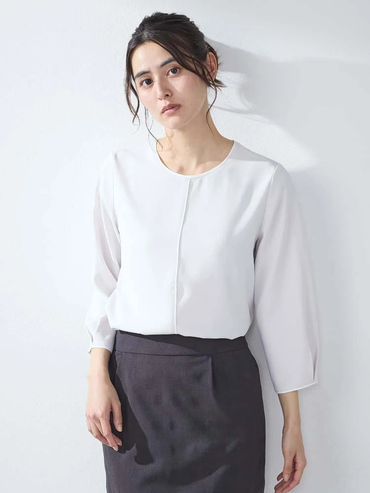 チューリップスリーブブラウスオフホワイト/サックス/ベージュ〈2BUY10%OFF〉
