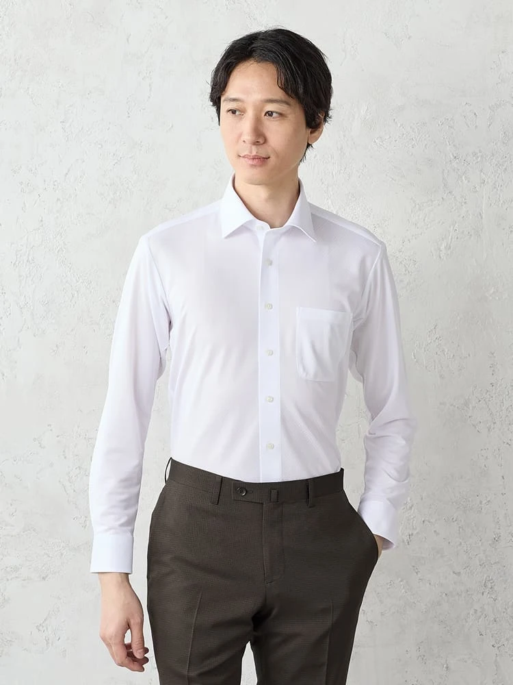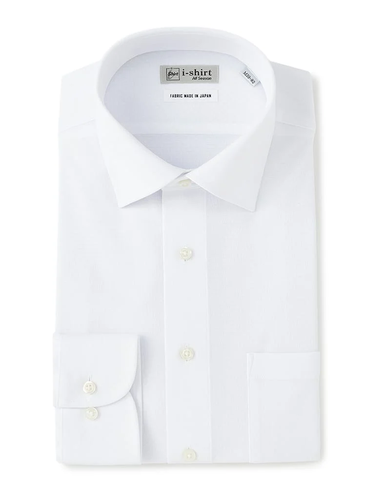 【完全ノーアイロン】長袖アイシャツ織柄セミワイドカラーホワイト<2点で1,000円OFF/3点で2,000円OFF!>