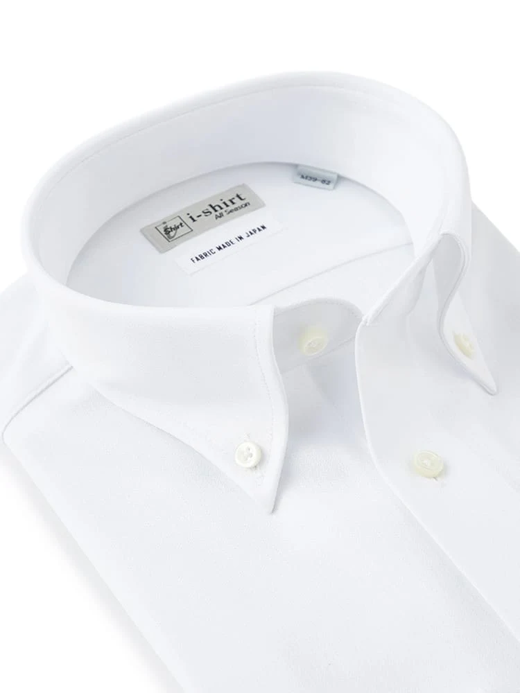 【完全ノーアイロン】長袖アイシャツ 織柄 ボタンダウン ホワイト<2点で1,000円OFF/3点で2,000円OFF!>